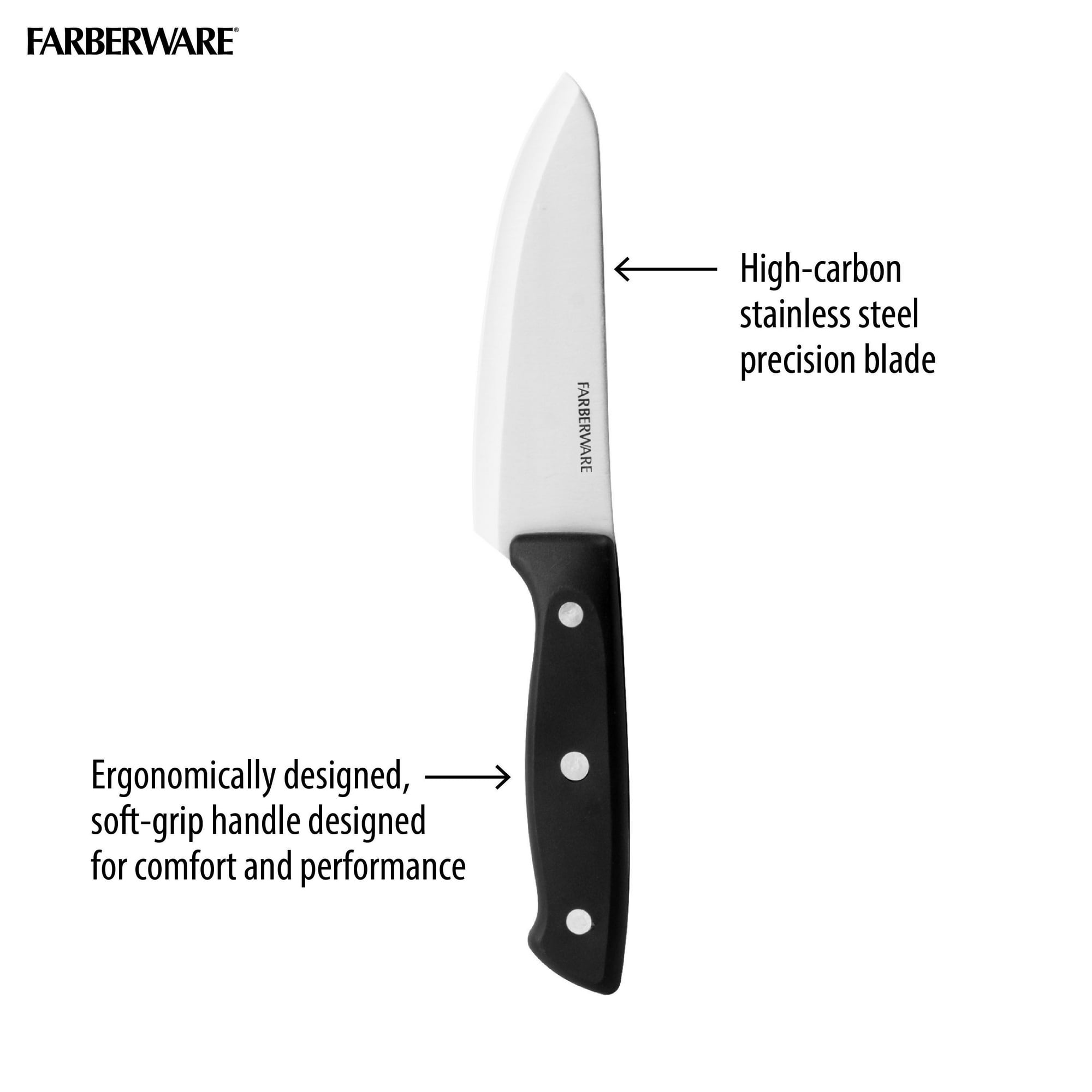 Each Farberware knife set includes an assortment of blade shapes and sizes to provide the right tool for every job. Boning knives and cleavers are perfect for breaking down larger cuts of meat, while bread knives slice through crusty loaves effortlessly. Santoku and paring knives chop, slice, and dice vegetables with ease. Some sets even include sharpeners, cutting boards, kitchen shears, and more.