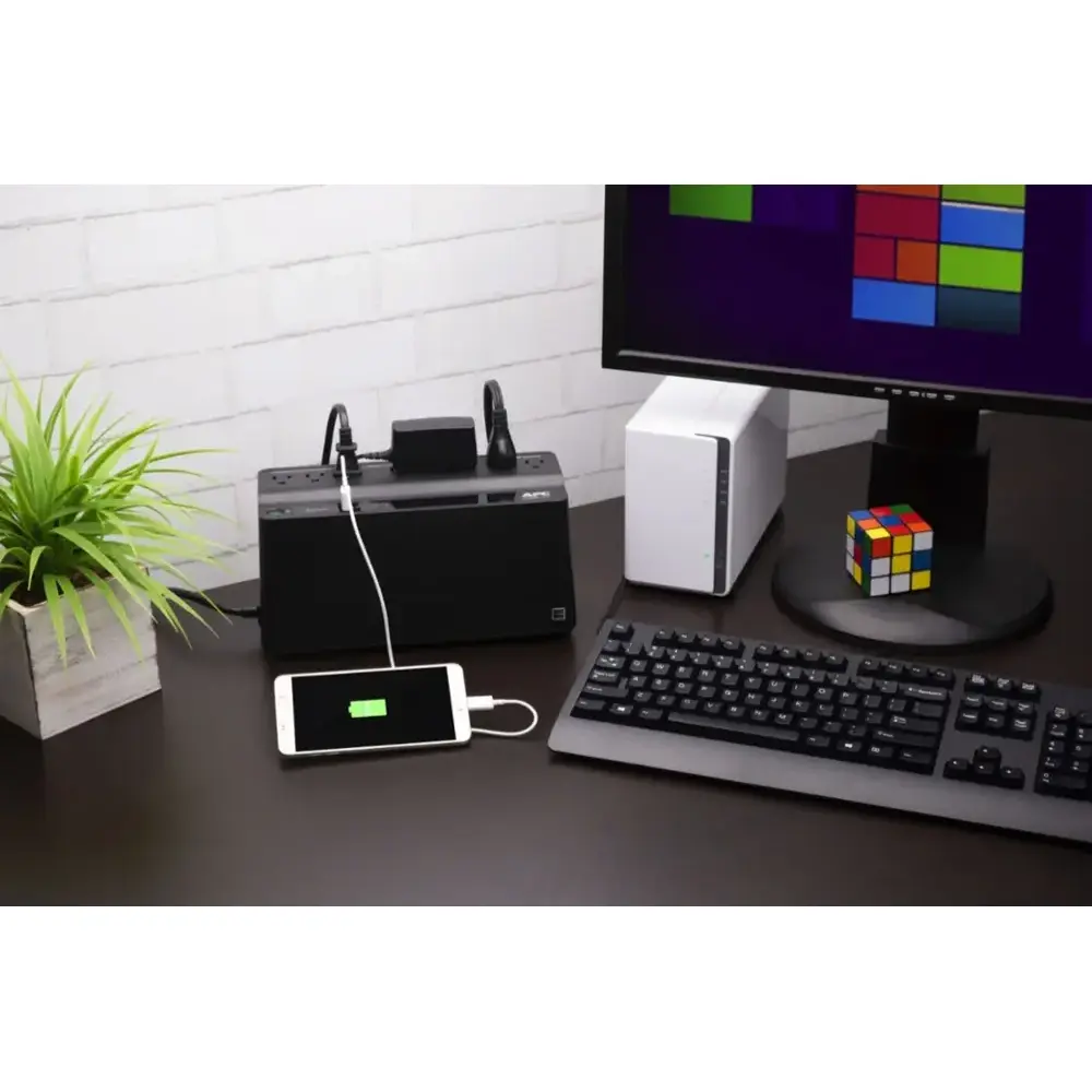 The APC Back UPS 650VA/360W provides reliable backup power with a 650VA / 360W battery capacity, ensuring your essential devices stay powered during outages. It features 7 NEMA 5-15R outlets to connect multiple devices and a USB Type-A charging port for convenient mobile device charging. With built-in surge protection, your equipment is safeguarded against power surges and spikes. Its floor or wall mountable design offers flexible placement options, while the compact, black design makes it ideal for home or office setups. Additionally, Automatic Voltage Regulation (AVR) helps maintain safe voltage levels without unnecessary battery usage