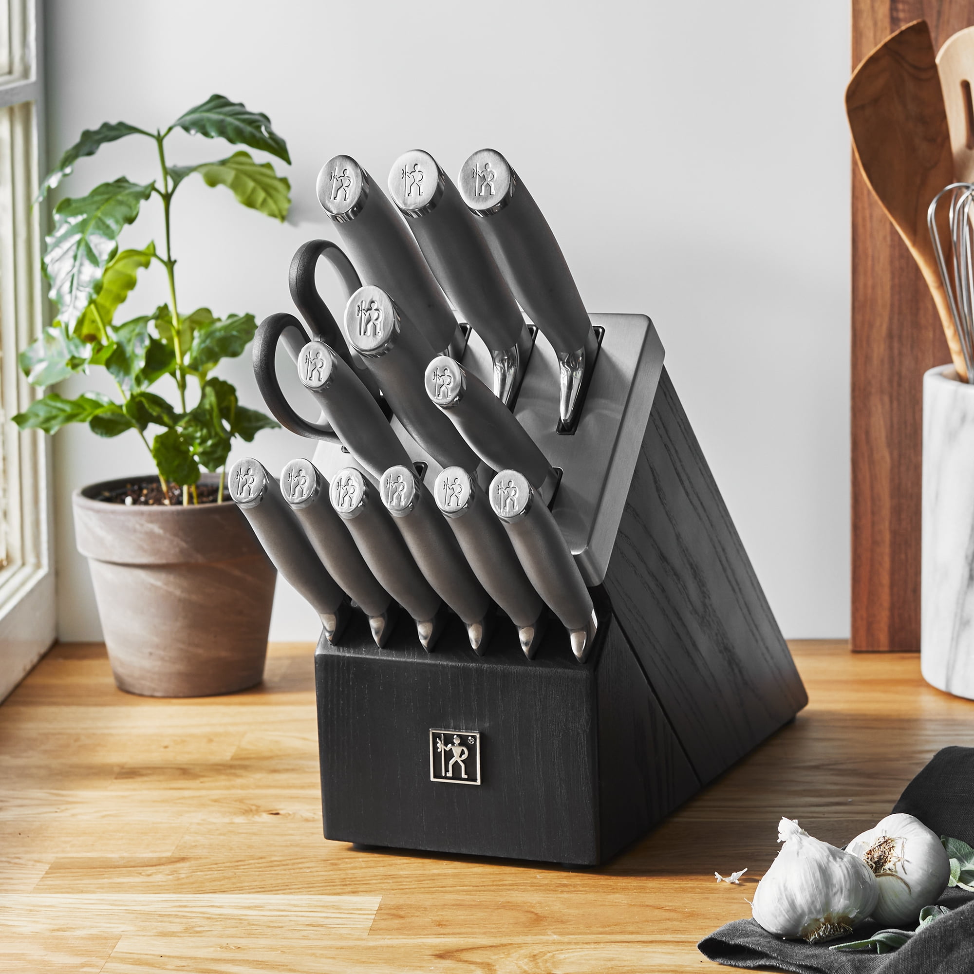 The Modernist cutlery line combines beauty and functionality with a fully forged bolster construction that seamlessly integrates the blade and handle for exceptional durability, balance, and a sleek look. Made from high-quality German stainless steel, the satin-finished blades in this professional knife set deliver precision cuts and are designed to stay sharp over time. The hollow, stainless-steel handles are lightweight and ergonomic, featuring a fingerprint-resistant, sandblasted texture for a comfortable grip. The polished end cap, embossed with the logo, adds a stylish finishing touch.