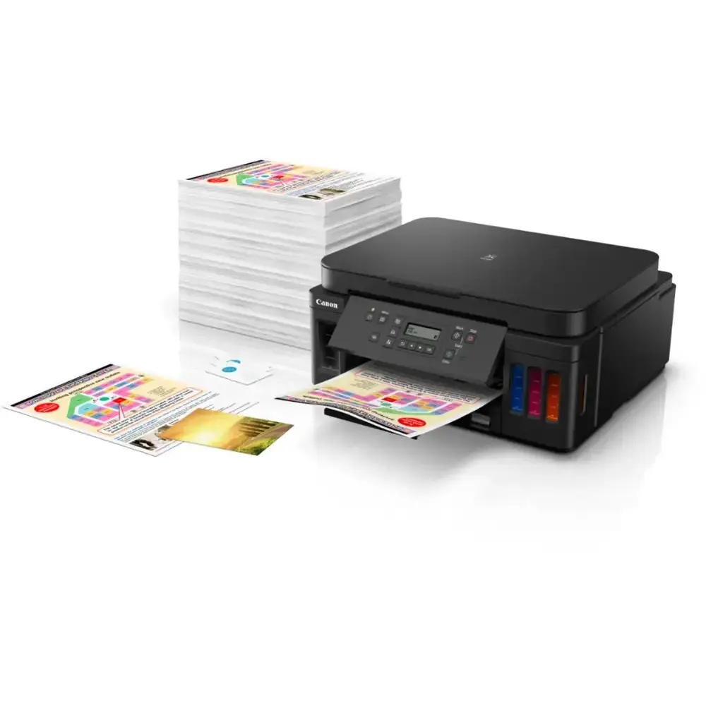 The Canon PIXMA MegaTank G6020 Wireless All-In-One Inkjet Printer is built for high-volume, cost-efficient printing. Featuring a MegaTank ink system, it delivers up to 6,000 black and 7,700 color pages per refill, reducing the need for frequent replacements. With wireless connectivity, you can easily print from your smartphone, tablet, or computer. This all-in-one printer offers print, scan, and copy functions, making it a versatile choice for home or office use. Enjoy borderless printing for vibrant photos and professional-looking documents, while automatic duplex printing helps save paper with double-sided prints. Designed for efficiency, it ensures fast print speeds to handle all your document needs
