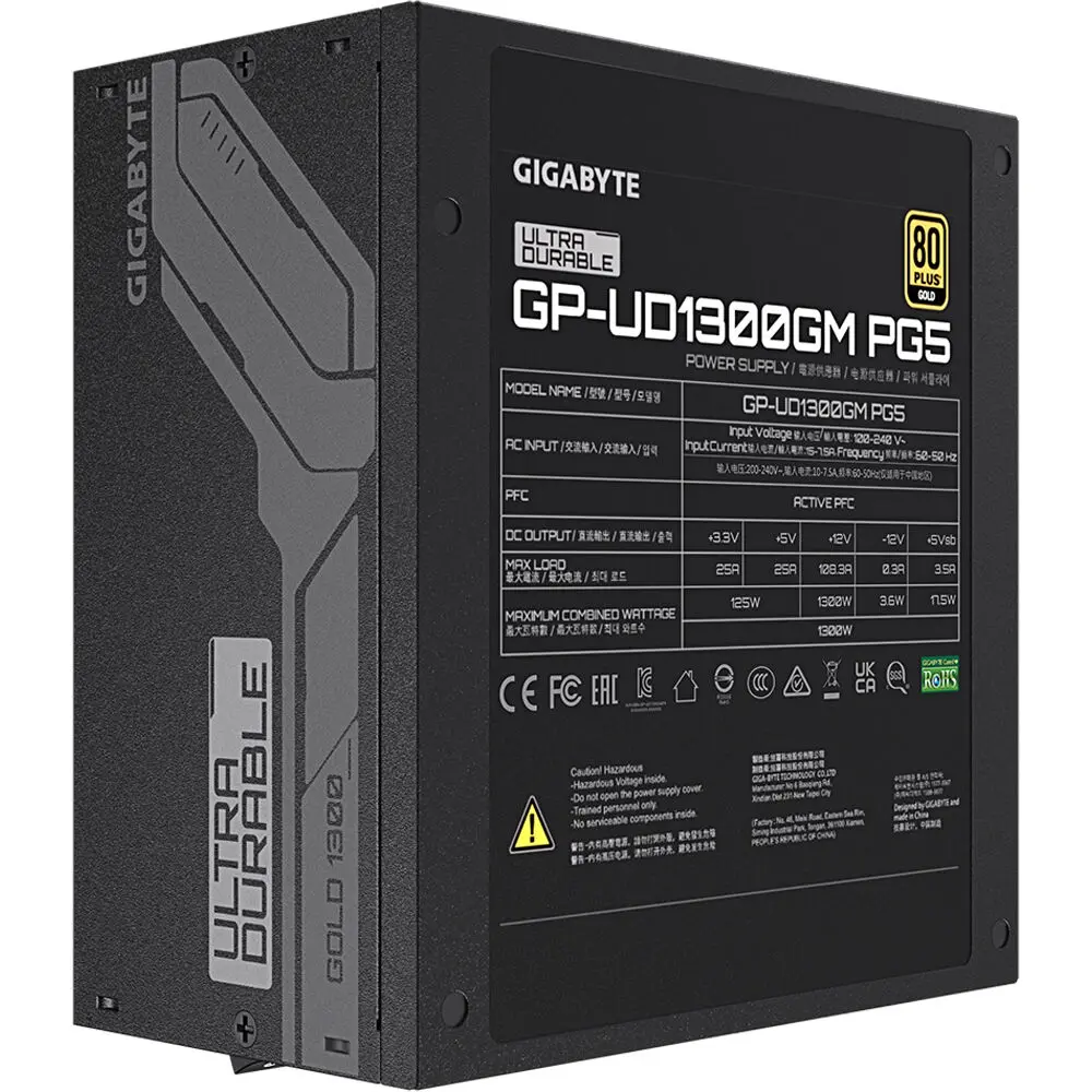 The GIGABYTE UD1300GM PG5 is a high-performance power supply unit designed to handle the most demanding gaming and workstation setups. With its 1300W of continuous power output and 80 PLUS Gold certification, it delivers reliable and efficient power to your system.