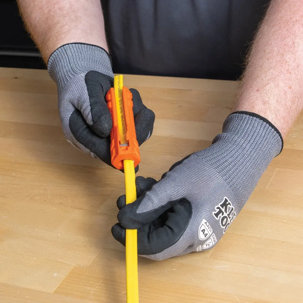 The Klein Tools 5-in-1 NM Cable Multi-Tool is designed for maximum efficiency, versatility, and easy portability. After cutting the wire to length, this all-in-one tool handles every step of wire preparation for plugs and light switches. Its bright orange color makes it easy to locate in a toolbox or low-light environments.