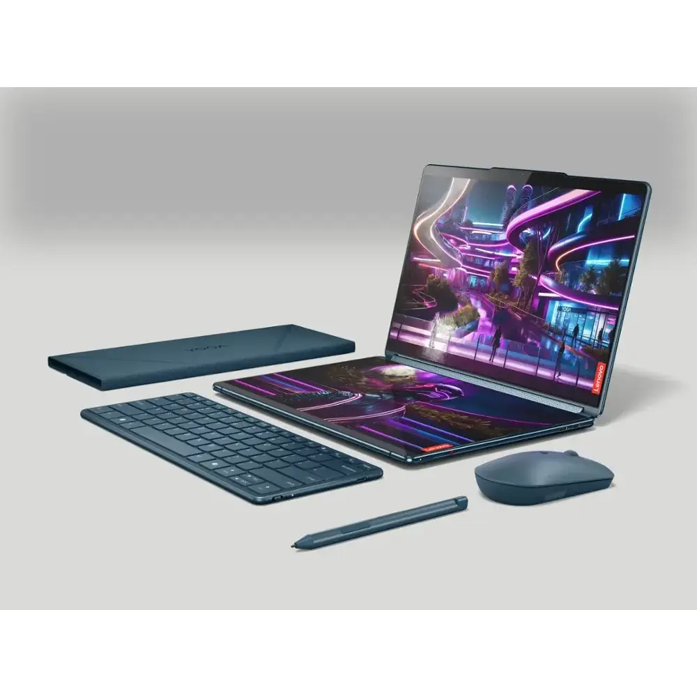 This ultra-slim, Tidal Teal laptop weighs just 3.17 lbs (1.44 kg) and is 0.63 inches thin, making it highly portable. The 9.5-hour battery life, USB-C 65W fast charging, and Copilot AI integration enhance efficiency. Ideal for professionals and creatives, the Yoga Book 9i redefines the modern laptop experience.