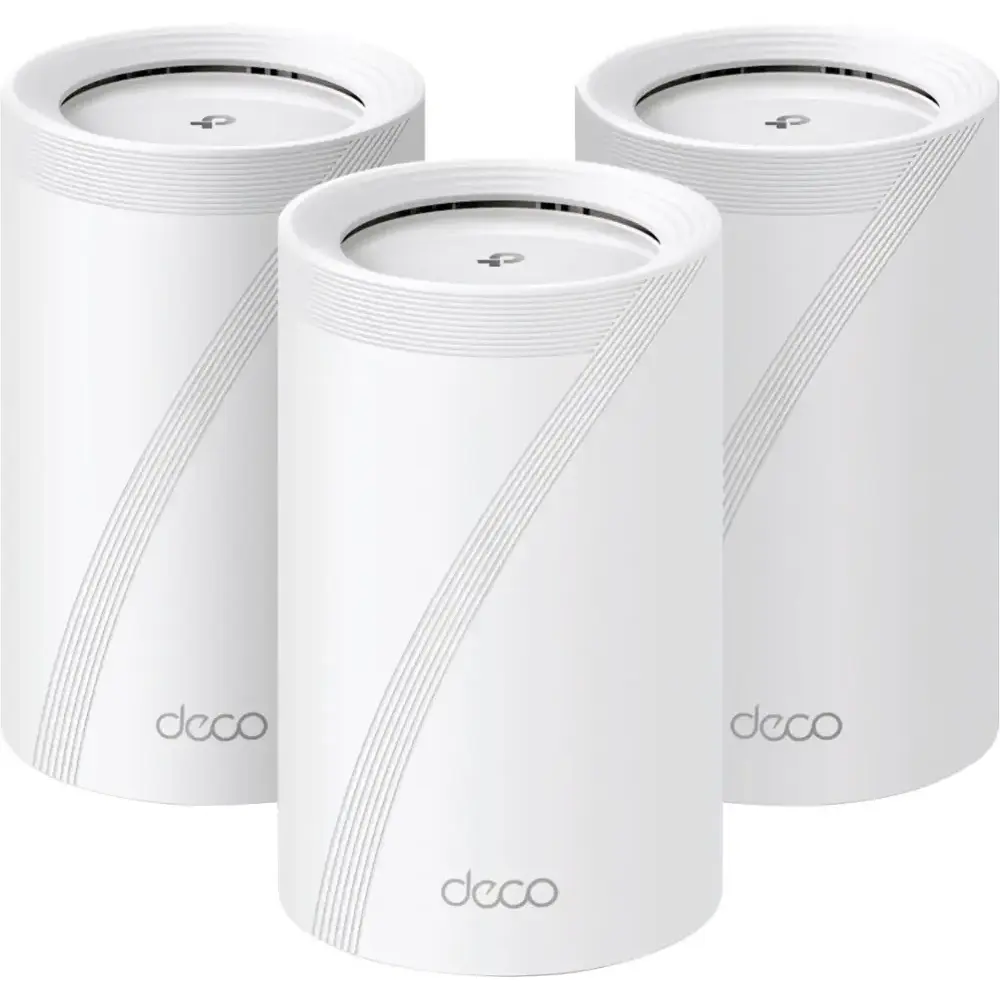 The TP-Link BE11000 Whole Home Multi-Gig Tri-Band Wi-Fi 7 Mesh Router System (3-Pack) delivers ultra-fast Wi-Fi 7 speeds up to 11,000 Mbps, ensuring lightning-fast connectivity for all your devices. Its tri-band mesh system provides seamless whole-home coverage, eliminating dead zones and maintaining a strong, stable connection throughout spaces up to 7,200 sq. ft. With multi-gig connectivity, it supports the latest high-speed internet plans for both wired and wireless connections. Capable of handling over 200 devices, this system is perfect for busy smart homes. Enhanced with WPA3 encryption and TP-Link HomeShield, it offers robust network protection. Plus, the easy setup and management via the TP-Link app makes installation simple and hassle-free