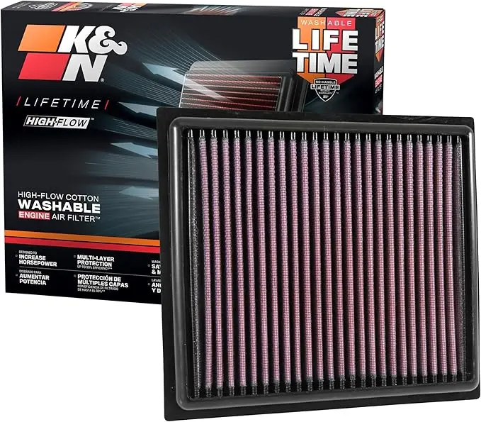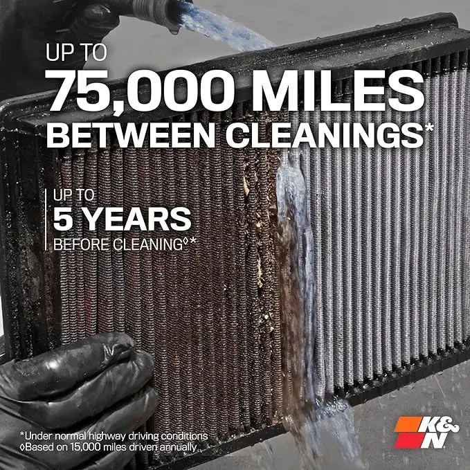 K&N performance High-Flow Air Filters are engineered to improve engine performance by increasing airflow up to 50%. Unlike disposable paper filters which must be frequently replaced, K&N Air Filters are washable, reusable, and engineered to last for the life of your vehicle. K&N air filters are backed by our famous 10-Year/Million Mile Limited Warranty, and they provide an environmentally friendly way to reduce landfill waste by avoiding disposable filters. Engineered to fit easily into your factory air box, installation can be completed in a matter of minutes! K&N develops and tests each product on the world’s toughest race tracks, so we can bring the highest level of performance to your daily driving. Join the millions of customers who have saved money and improved vehicle performance by upgrading to K&N filtration.
