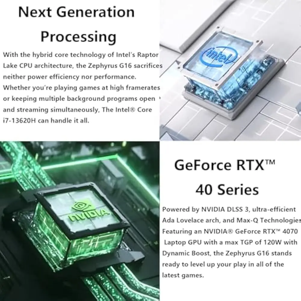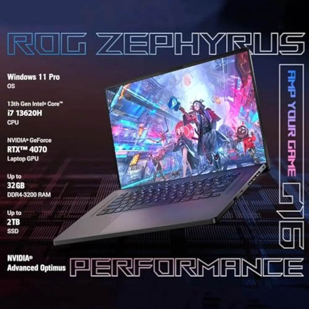 The ASUS ROG Zephyrus G16 Gaming Laptop (Model Year 2024) is designed for gamers seeking high performance and sleek aesthetics. Powered by an Intel Core i7-13620H processor with a clock speed of up to 4.9 GHz and featuring 10 processing cores, this laptop delivers exceptional processing power for demanding gaming applications.