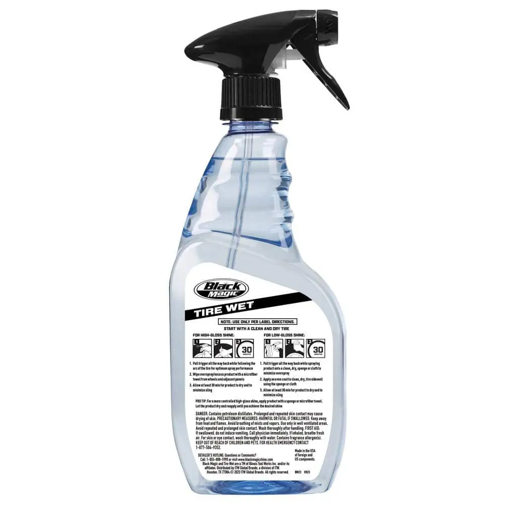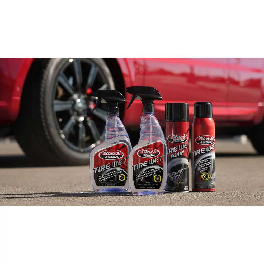 Black Magic Tire Wet is America's top choice for tire shine, providing your tires with a glossy, long-lasting wet black finish with just one simple spray. Specially designed to deliver the brightest shine of any leading tire spray, Tire Wet dries quickly to minimize sling on your wheel wells.