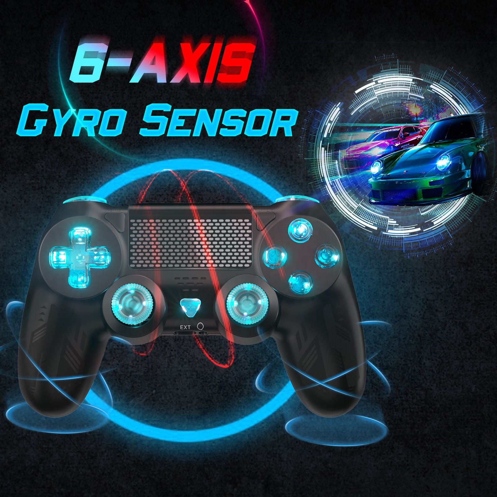 Dual Vibration Feedback & Gyro Sensor: With built-in dual vibration motors and a 6-axis gyroscope, the controller enhances realism for PS4 gamers, allowing you to feel every hit, crash, and explosion through tactile feedback.