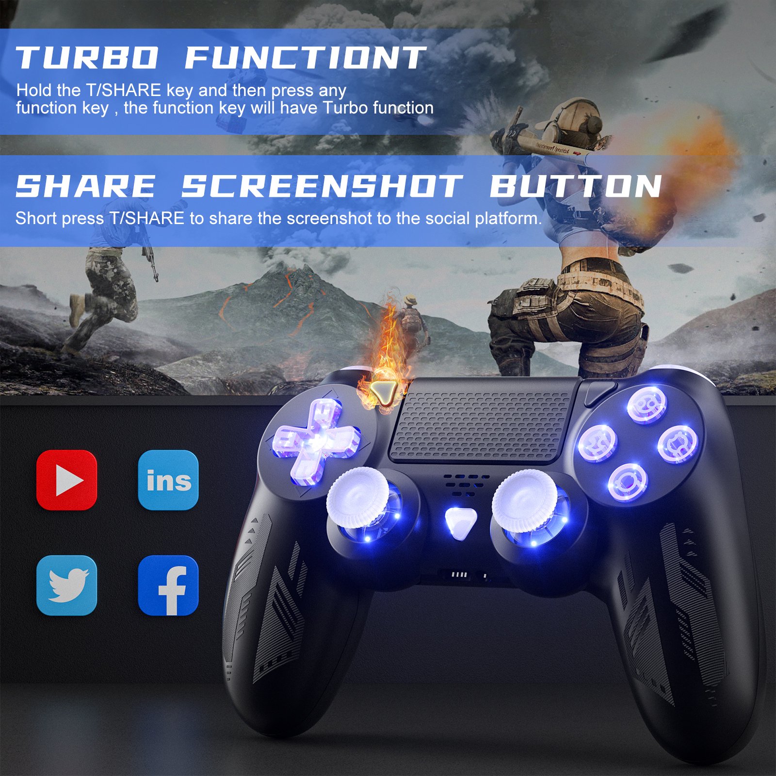 Precise Control & Turbo: Experience a highly sensitive button layout that enhances your gaming experience. The analog sticks and trigger buttons are responsive and smooth, virtually eliminating input lag and drift. To activate the Turbo burst function, press and hold the T/SHARE key, then press any function key.