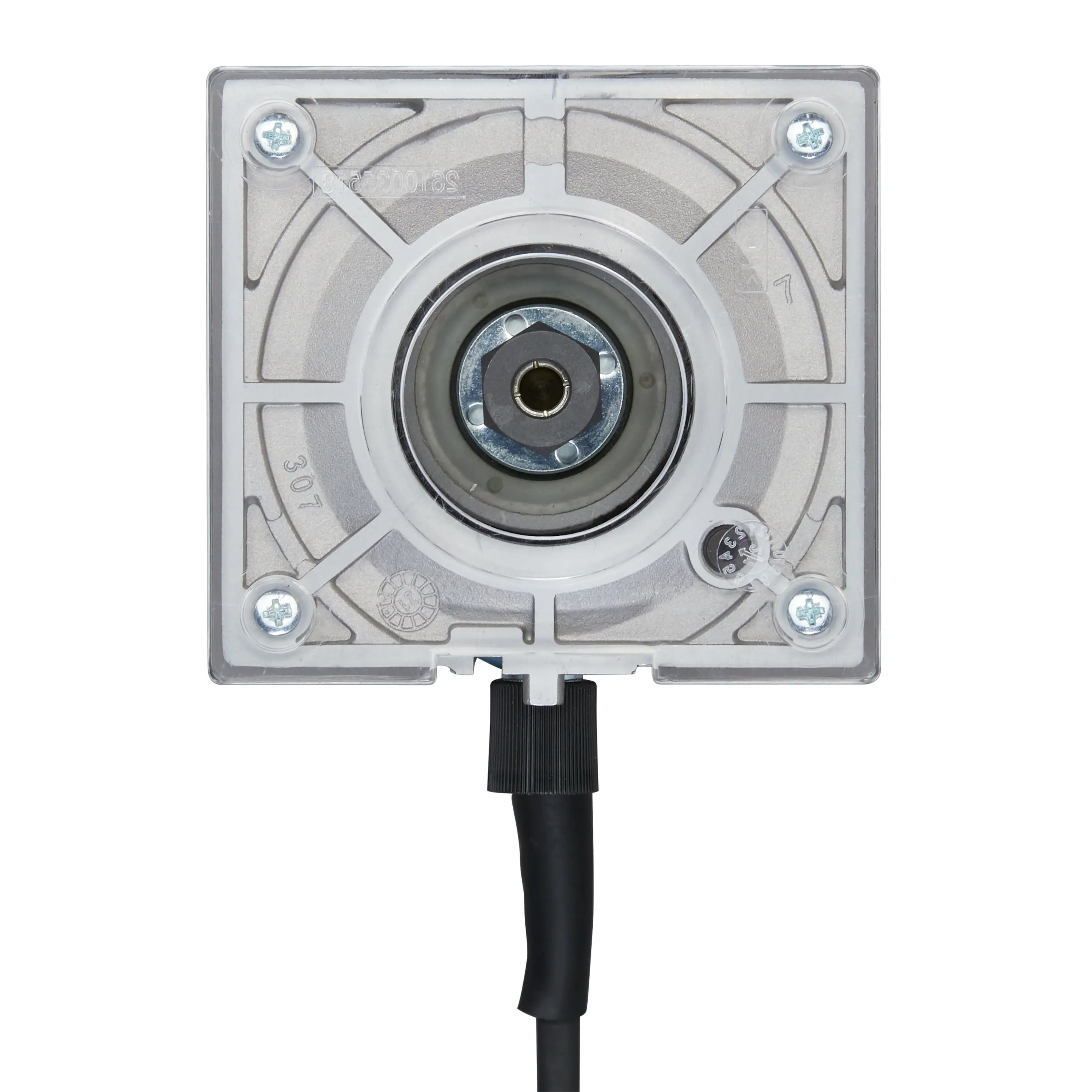 The Bosch PR20EVS Colt electronic variable-speed palm router combines power and precision in a compact design. With a 1.0 HP, 5.6 Amp motor that offers variable speeds from 16,000 to 35,000 RPM, it features Constant Response circuitry for consistent performance under load and soft-start circuitry to minimize startup torque. Easy depth adjustments and micro-fine tuning are facilitated by a simple clamping lever and a rear adjustment wheel. It accepts standard 1/4-inch bits with a maximum cutter diameter of 1-5/16 inches, while its ergonomic rubber over-molded grip ensures comfortable handling.
