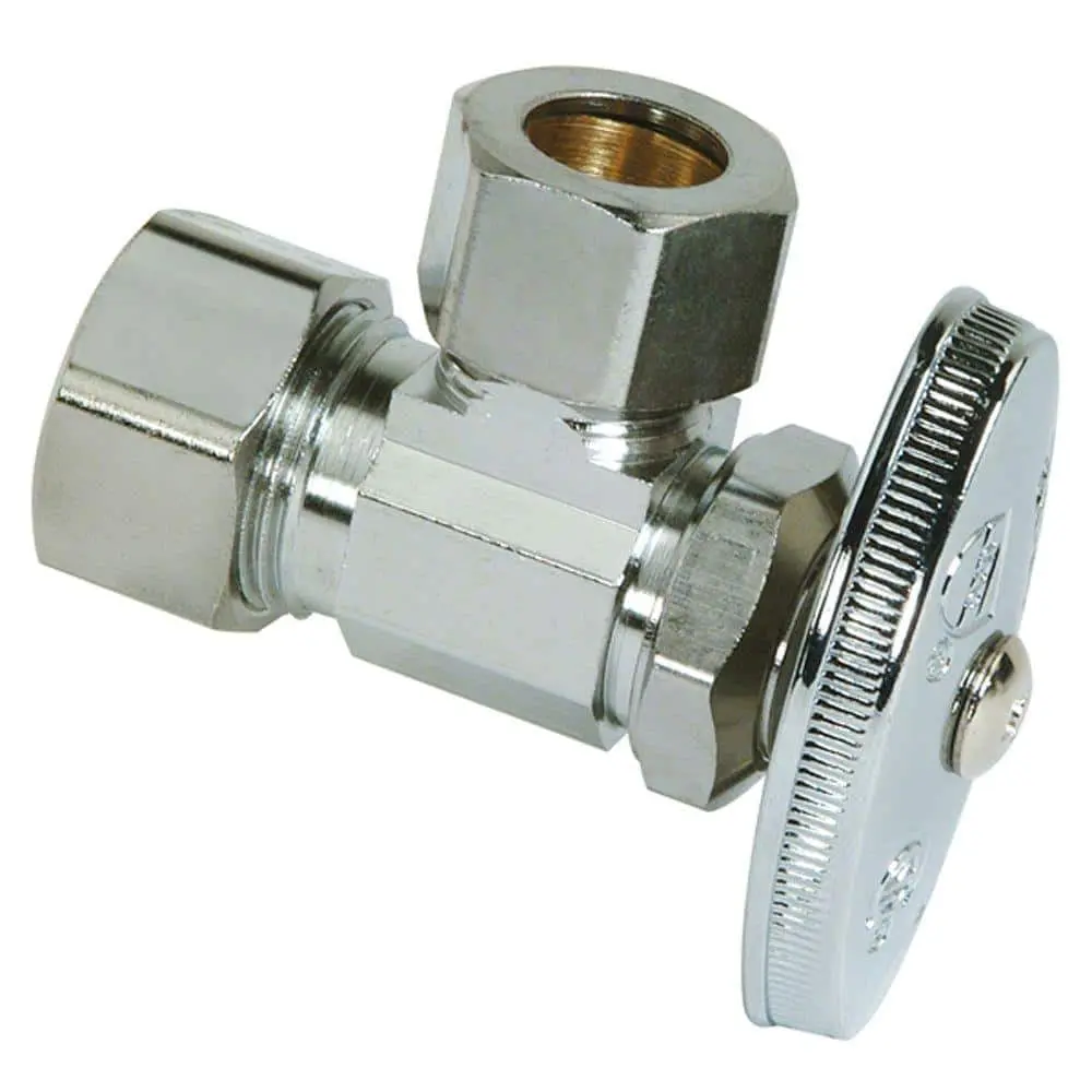 The BrassCraft 1/2 in. Nominal Compression Inlet x 1/2 in. O.D. Compression Outlet Multi-Turn Angle Valve is designed to control water flow to various household plumbing fixtures, including faucets, toilets, dishwashers, icemakers, and washing machines. Typically installed where the water pipe enters from the floor, this angle valve allows you to stop the water flow to a fixture with just a few turns of the handle. This feature enables maintenance and repairs without needing to shut off water to the entire home.