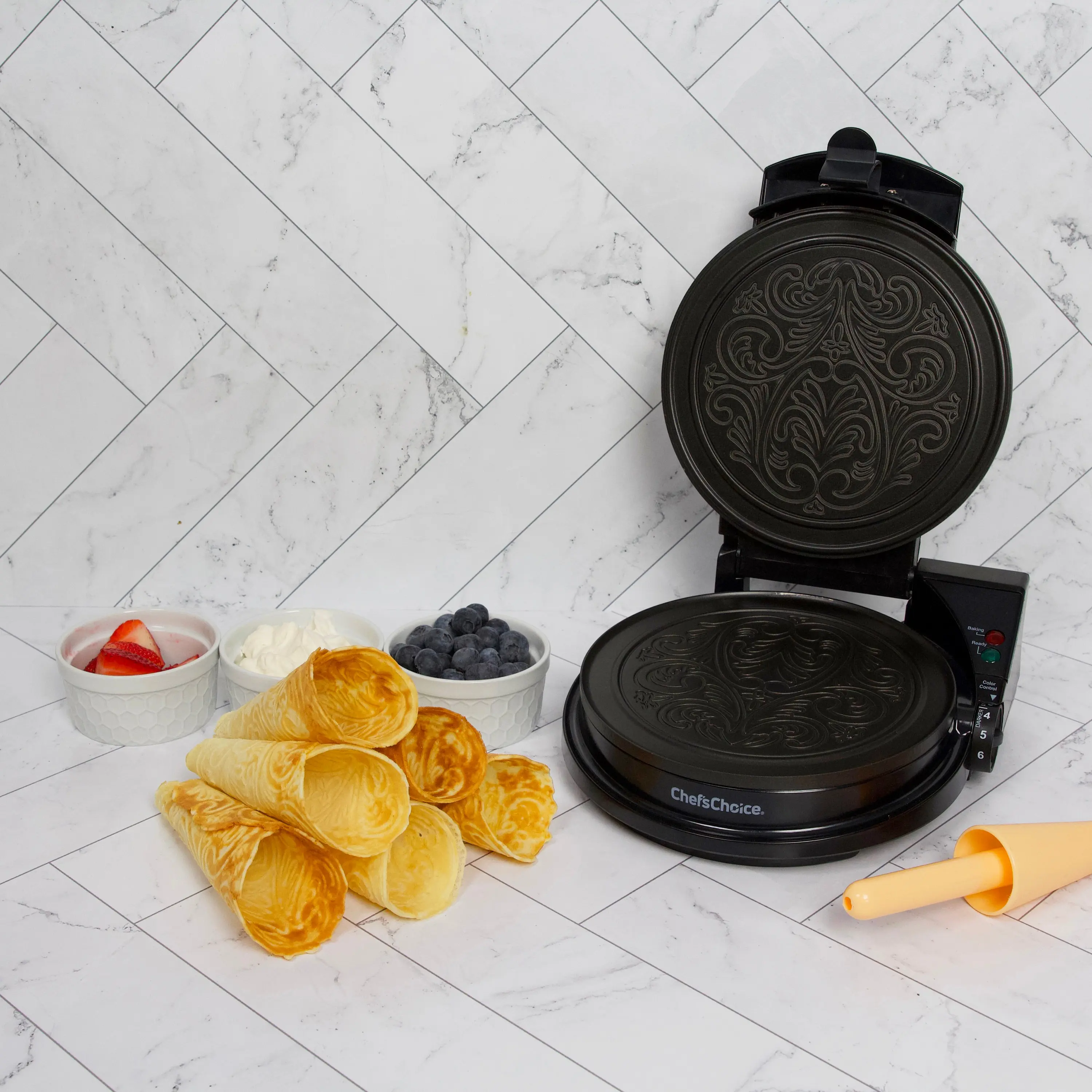 eady in Minutes: Enjoy delicious homemade KrumKakes in just 2 minutes.Complete Baking System: The professional set includes a KrumKake maker and a cone-rolling form.Instant Temperature Recovery: Always ready to bake with quick temperature recovery.Color Select Control: Choose your desired shade from golden to brown.