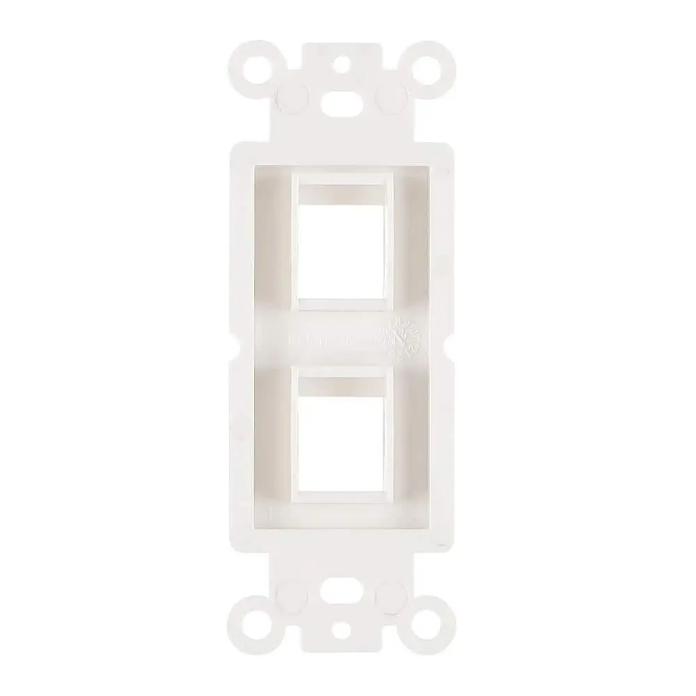 The Commercial Electric 1-Gang 2-Port Wall Plate Insert offers a flexible and customizable solution for managing multiple low-voltage connections in one location. Compatible with a 1-gang rocker wall plate, the insert features 2 keystone ports. Each port supports easy snap-in installation of various keystone jacks for connections like Ethernet, HDMI, USB, audio, and other low-voltage applications. The insert mounts flush with the wall plate for a neat, organized look.