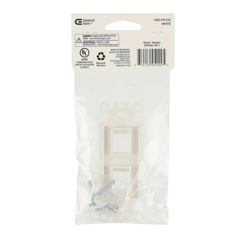 Commercial Electric 1-Gang 2-Port Plastic Wall Plate Insert, White (DPPSIW-1PP-1)