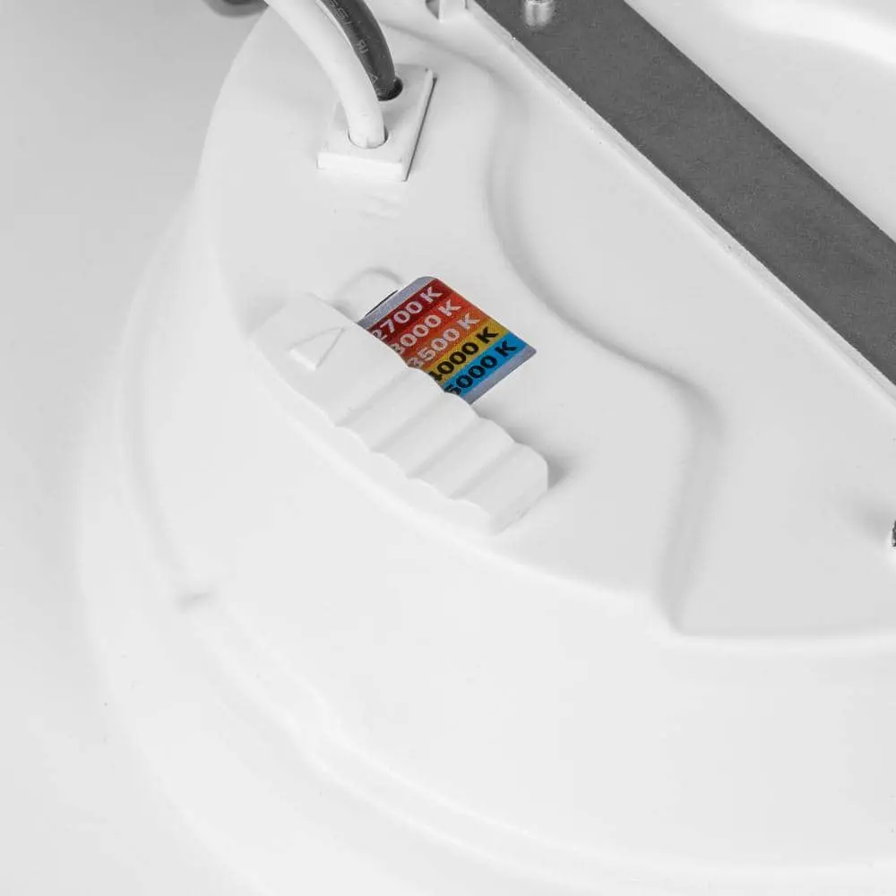 The Commercial Electric 5/6 in. Color Temperature Select LED downlight offers an easy upgrade for your existing can lights, combining sleek recessed lighting with energy-efficient LED technology. These downlights feature a color temperature (CCT) changing switch, allowing you to select your preferred light warmth, from Warm White (2700K) to Daylight (5000K), with options in between (3000K, 3500K, and 4000K). Using only 9 watts, they provide brightness equivalent to a 65-watt incandescent bulb and cost approximately $1.44 per year to operate. With a 50,000-hour lifespan (about 34 years), they last 50 times longer than traditional incandescent bulbs. Compatible with most 5-inch and 6-inch housings, these downlights are easy to install with a medium (E26) socket base adapter.
