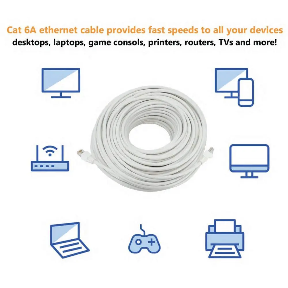 The Commercial Electric Cat6A UTP Ethernet Cable delivers high-performance connectivity for a wide range of LAN network components, including PCs, servers, printers, routers, gaming consoles, switch boxes, network media players, NAS, VoIP phones, and PoE devices. Designed for high-speed, reliable performance, it ensures stable connections and is backward compatible with Cat6 and Cat5e jacks.