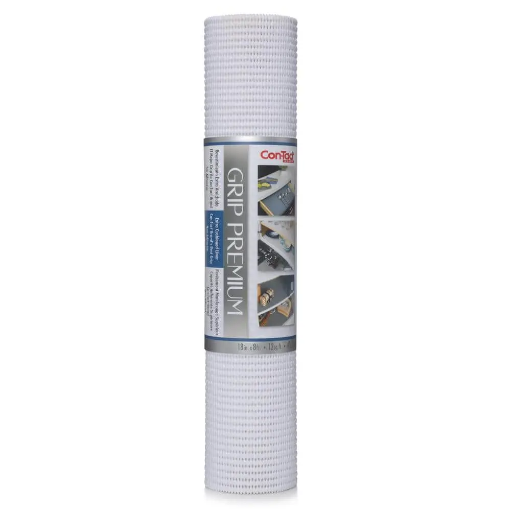 Keep your shelves and drawers protected and looking fresh with the Con-Tact Grip Premium Bright White Non-Adhesive Shelf and Drawer Liner. Designed with a non-adhesive grip surface, it stays securely in place without leaving any sticky residue. The cushioned surface helps prevent scratches and damage, while the durable and washable material makes it easy to clean and reuse. Measuring 18 inches wide by 96 inches long, it’s simple to cut and customize to fit shelves, drawers, and cabinets of any size. The bright white color adds a clean, modern look to any space.