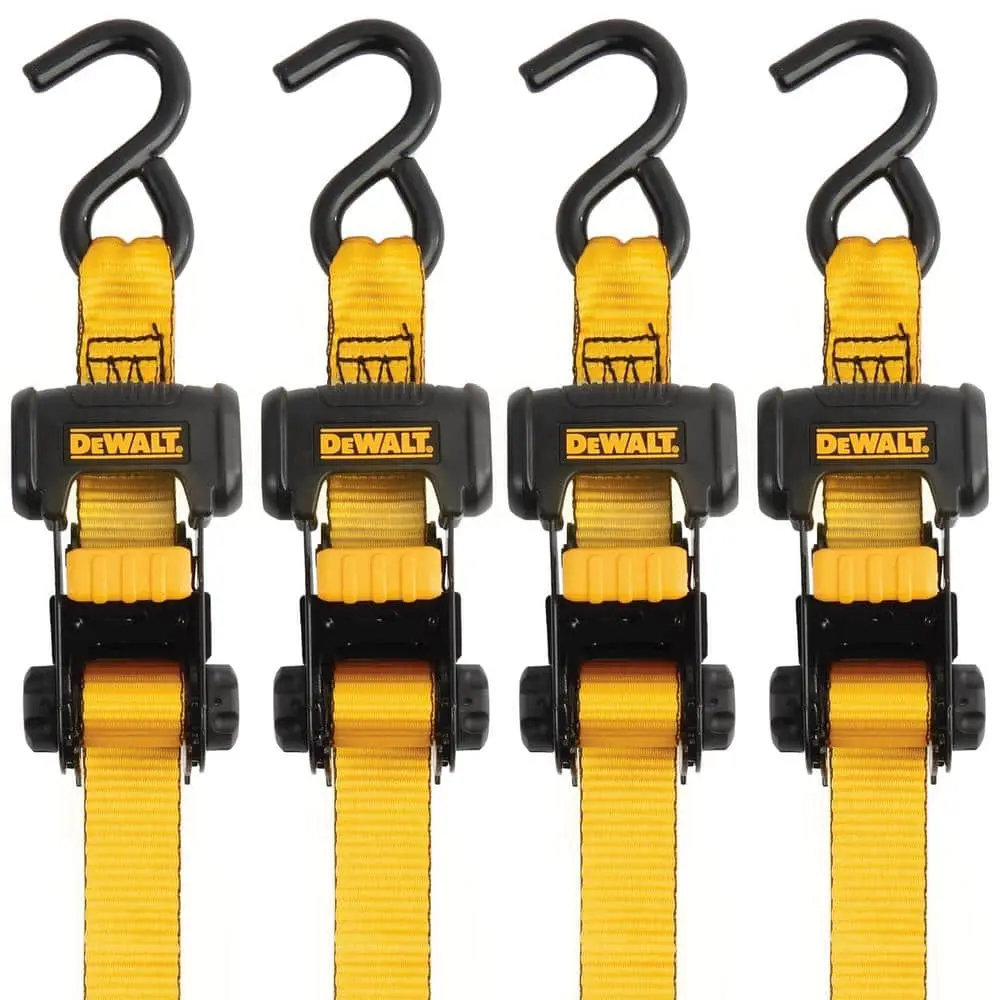 The DEWALT 1.25 in. x 16 ft. Ratchet Tie-Down Straps (4-Pack) are designed for heavy-duty cargo securing. With a 1.25-inch wide strap and a generous 16 feet in length, these straps offer the perfect balance of strength and flexibility. Built with a 3000 lbs. break strength