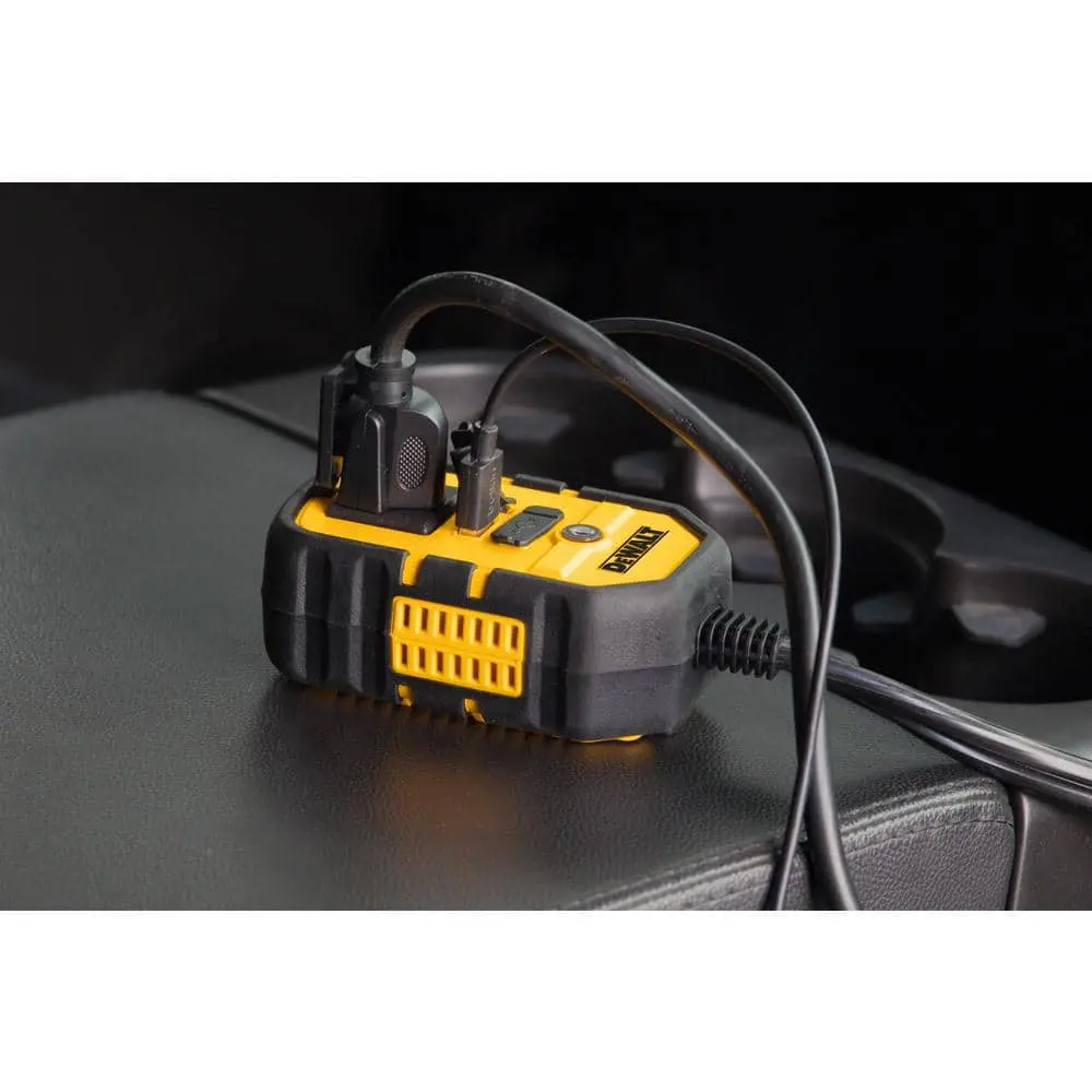The DeWalt Power Inverter provides 140 watts of reliable household power, along with 25W USB Type C and 15W USB Type A ports for charging devices. Simply plug the inverter into your vehicle’s 12V DC outlet (cigarette lighter) and charge small electronics such as cell phones, tablets, and more. It features a fan-free, silent operation design and includes low voltage protection that automatically shuts off the inverter when your vehicle’s battery is low, preventing battery drain. The included mounting kit ensures the inverter stays securely in place during driving, with installation hardware provided.
