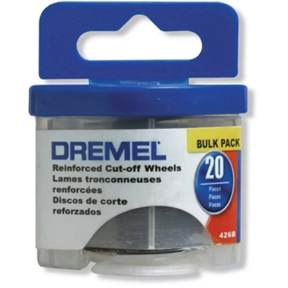 Reinforced with fiberglass for enhanced durability, the Fiberglass Reinforced Cut-Off Wheels are perfect for slicing, cutting, grooving, and trimming various materials, including both hard and soft metals, marble, drywall, and plastic. Each cutting disc features a diameter of 1-1/4 inches (31.8 mm) and a thickness of 0.045 inches (1.1 mm), making them suitable for cutting or slotting bolts, screws, sheet metal, thin wood, and plastic. The 426B pack includes 20 cut-off wheels stored in a convenient speed feed dispenser.