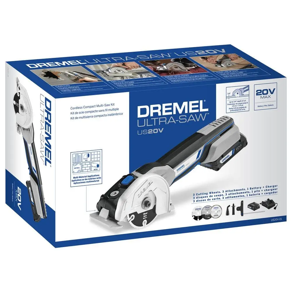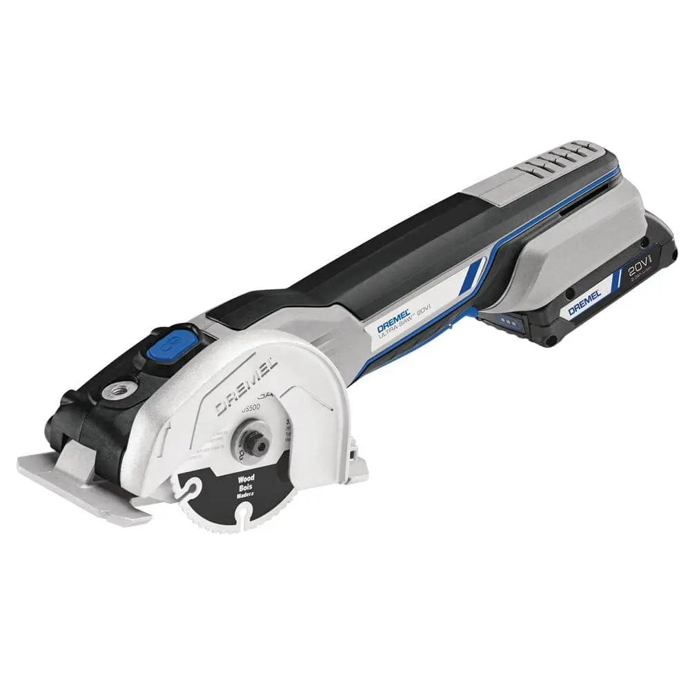 The Dremel US20V Compact Saw offers a powerful, cordless cutting solution. Unlike bulky circular saws, its sleek design ensures comfort and a clear line of sight for clean, precise cuts. With the largest accessory system on the market, you can easily handle plunge cuts, flush cuts, and surface preparation on wood, PVC, metal, and more! For tough materials like masonry and tile, the durable metal guard is designed specifically to handle challenging tasks, making it ideal for a wide range of projects.