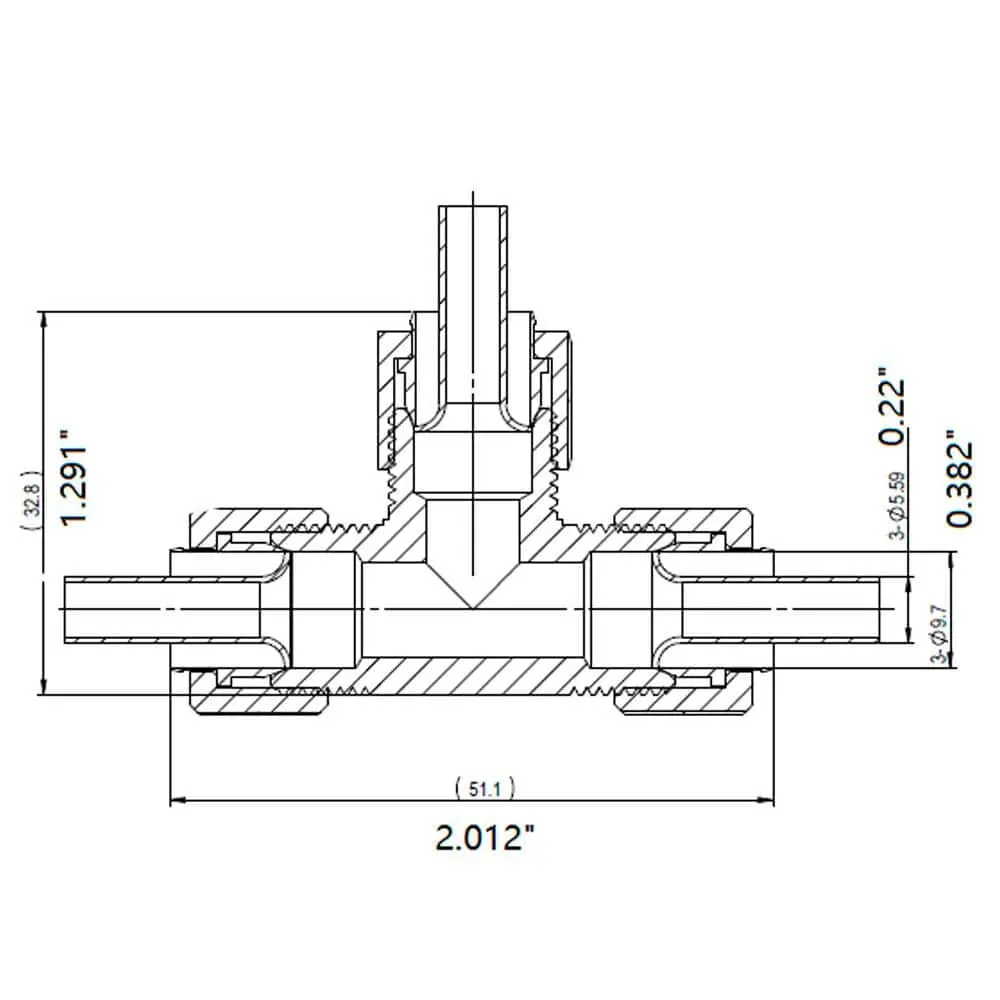 The compression tee features a "T" shape, allowing for branch line connections with three compression fittings. Made of durable, lead-free brass, it is corrosion-resistant and built for long-lasting performance. This fitting meets NSF 61 and 372 standards and is registered in Massachusetts.