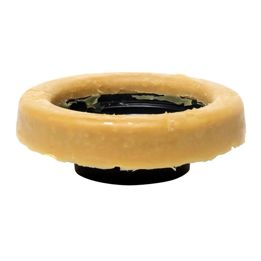 This reinforced wax toilet bowl gasket is designed for easy installation and features a polyethylene flange for secure sealing with floor and wall-mounted bowls. It comes packaged in a protective plastic sleeve to maintain its shape and accommodates both 3 in. and 4 in. waste lines (sold separately). The set includes a 1/4 in. x 2-1/4 in. E-Z Snap brass bolt kit for added convenience.