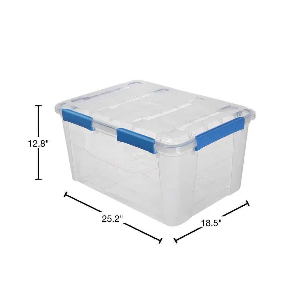 The 75L/79.3Qt Waterproof Clear Latch Tote from Ezy Storage offers ample room for your belongings with its generous 75L/79.3Qt capacity. Its waterproof design keeps contents safe from moisture, while the clear construction provides easy visibility for quick access. Featuring a durable latch system for a secure seal, this tote is also IP-67 rated, ensuring top-notch protection against dust and water, making it a reliable storage solution for a variety of items