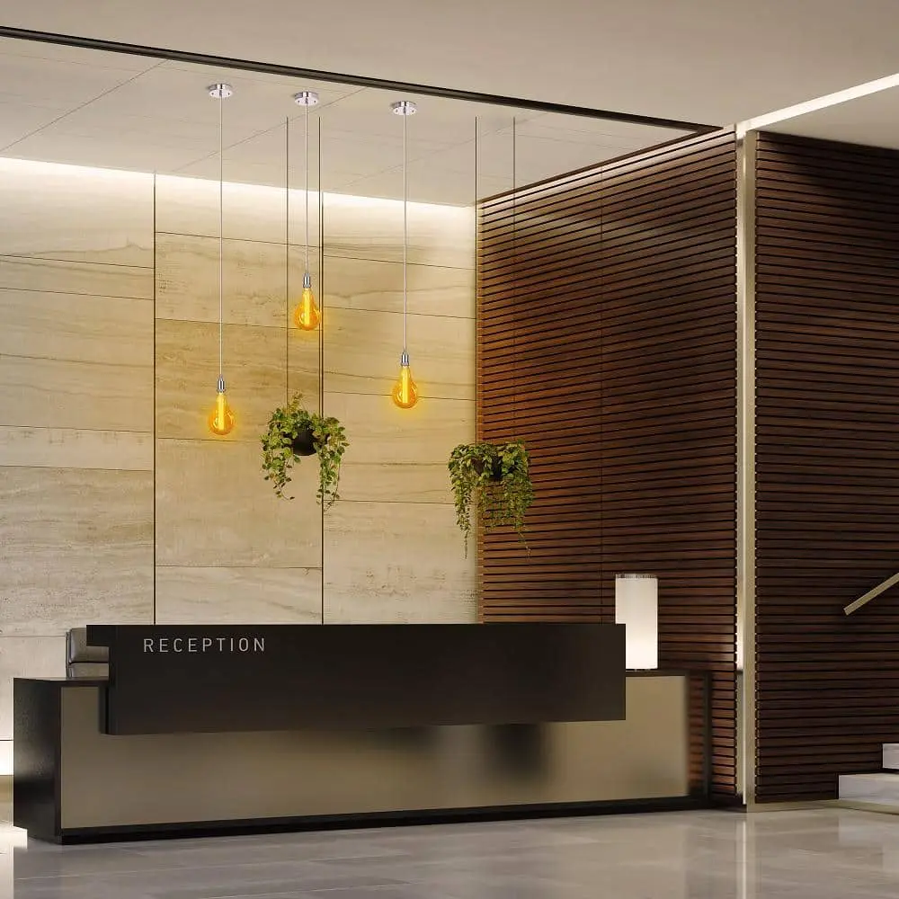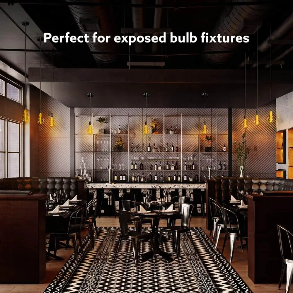 Add a designer flair to your space with this oversized Vintage-Style LED Light Bulb. Featuring a thin LED filament suspended in clear acrylic, it captures the essence of an Edison-style industrial bulb while incorporating modern touches. Its large size makes a bold statement in restaurants, luxury hotels, and homes. The warm white light and amber glass create a cozy, romantic glow perfect for living rooms, bedrooms, or retail environments. Hang it from a pendant and pair it with other vintage-style LED bulbs for a retro-inspired atmosphere. Combine with Feit Electric woven fabric pendants (sold separately) to complete the look. Adjust the ambiance with LED-compatible dimmer switches. The PS50/AYC/820/HDRP LED bulb lasts up to 15,000 hours and uses 94% less energy than a standard 25-watt incandescent bulb. Experience the charm of vintage style with the efficiency of LED technology.