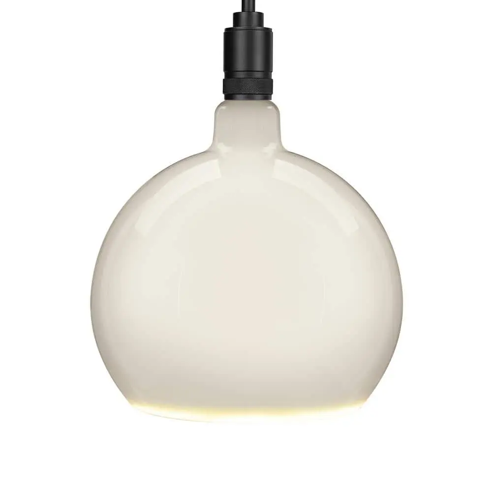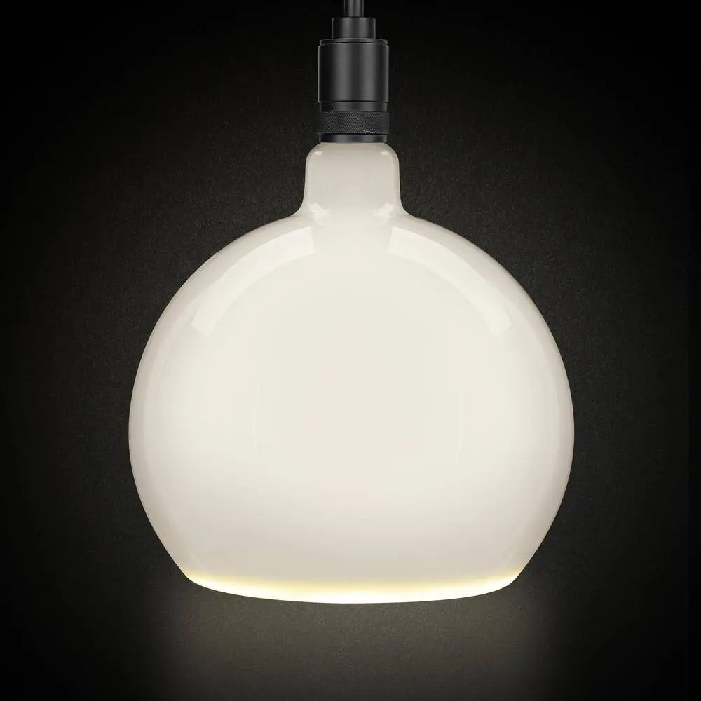 Add a touch of luxury and style to your home with the Frosted Globe LED Bulbs from Feit Electric. This sculptural glass sphere features a sleek, geometric design that will surely catch the eye. Its elegant, understated shape and intricate details make it the perfect addition to any room. Discreet LED strips along the bottom edge evenly distribute soft light, while the opaque glow creates a mid-century modern feel that suits residential spaces, hotels, and luxury retail environments. The Soft White 2700K color temperature provides a warm, welcoming ambiance ideal for living rooms, dining areas, and bedrooms. Benefit from energy savings with LED technology as each bulb produces 500 lumens using just 5.5W of power. This versatile bulb fits into medium E26 sockets and can be used in pendant lights or wall sconces to give a fresh update to traditional fixtures. Paired with Feit Electric woven fabric pendants (sold separately), it creates a premium, modern look. The integrated LEDs last up to 15,000 hours, providing up to 13.7 years of beautiful light.