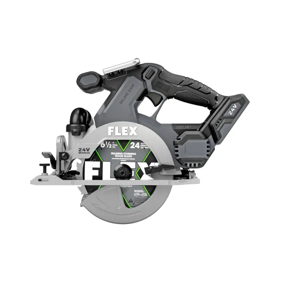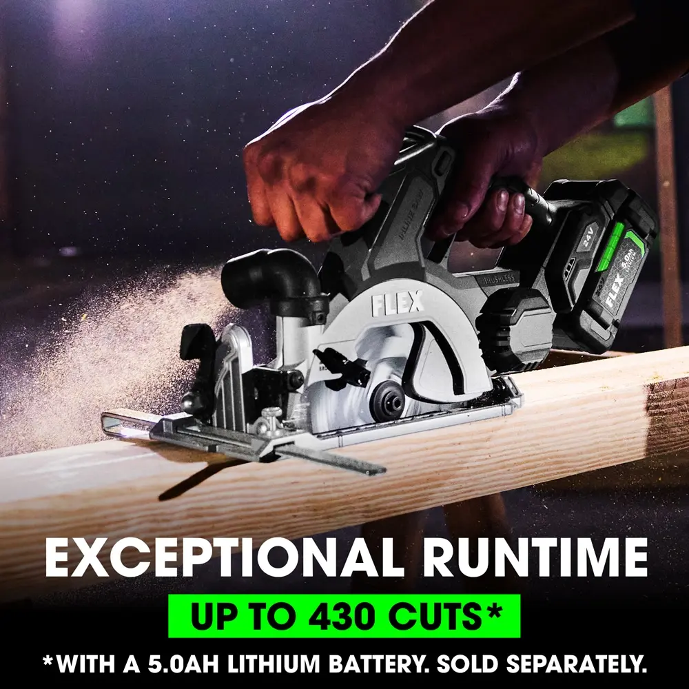 This innovative in-line saw design is the first of its kind, offering exceptional balance and enhanced visibility for a clear view on both sides of every cut. The FLEX 24V 6-" In-Line Circular Saw effortlessly cuts through 3X lumber in a single pass. An integrated LED light illuminates the workpiece, ensuring superior precision and accuracy. Additionally, this advanced saw features the FLEX Advantage, providing unmatched battery power, extended runtime, and faster charging (battery and charger sold separately).