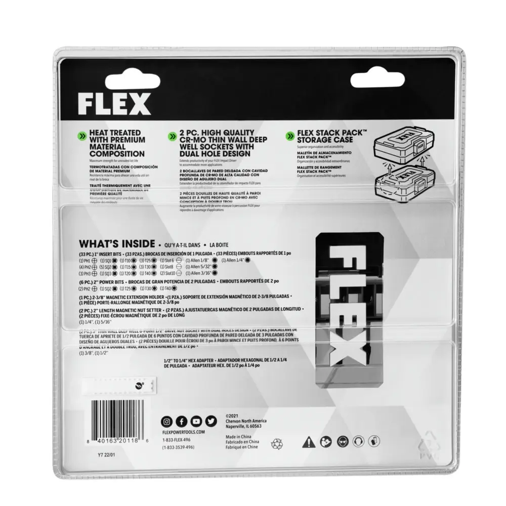 Tackle even the toughest applications with precision, durability, and control in every bit. This 45-Piece Impact Driver Bit Set includes a variety of commonly used bit sizes, along with a selection of Allen and Slotted bits not typically found in standard impact driver sets. Every FLEX bit is engineered for exceptional longevity, with optimized impact distribution to ensure maximum efficiency, eliminating wasted energy and effort. Take on more tasks with ease, thanks to the included 1/2" High-Quality CR-MO Thin Wall Deep Well Sockets. All components are neatly organized in an IMPACKS storage case, designed for customizable organization and quick access, fitting seamlessly into any case in the STACK PACK system.