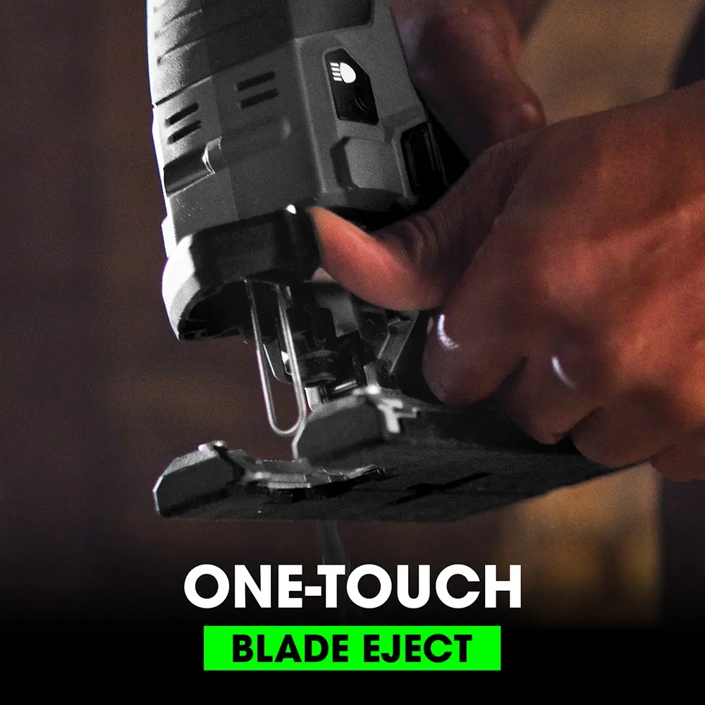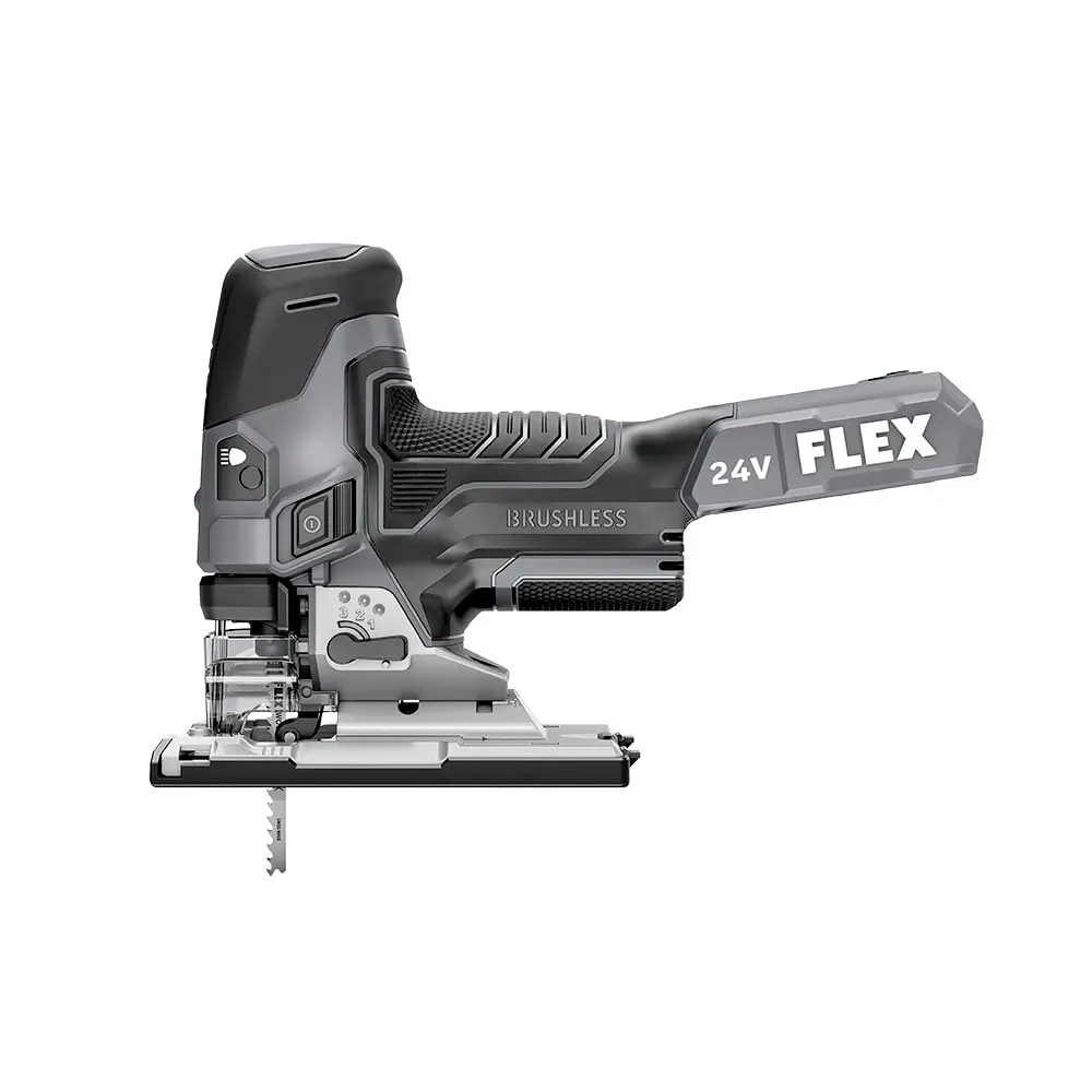 Achieve exceptional precision and control with the FLEX 24V Barrel Grip Jigsaw. This versatile tool offers four adjustable speeds and an auto mode for enhanced performance. The dual-guide blade holder enhances accuracy, while the built-in LED light boosts visibility for every cut. Easily change blades during use with the convenient one-touch blade eject system. Experience the FLEX Advantage with powerful 24V battery performance, extended runtime, and quicker charging (battery and charger sold separately).