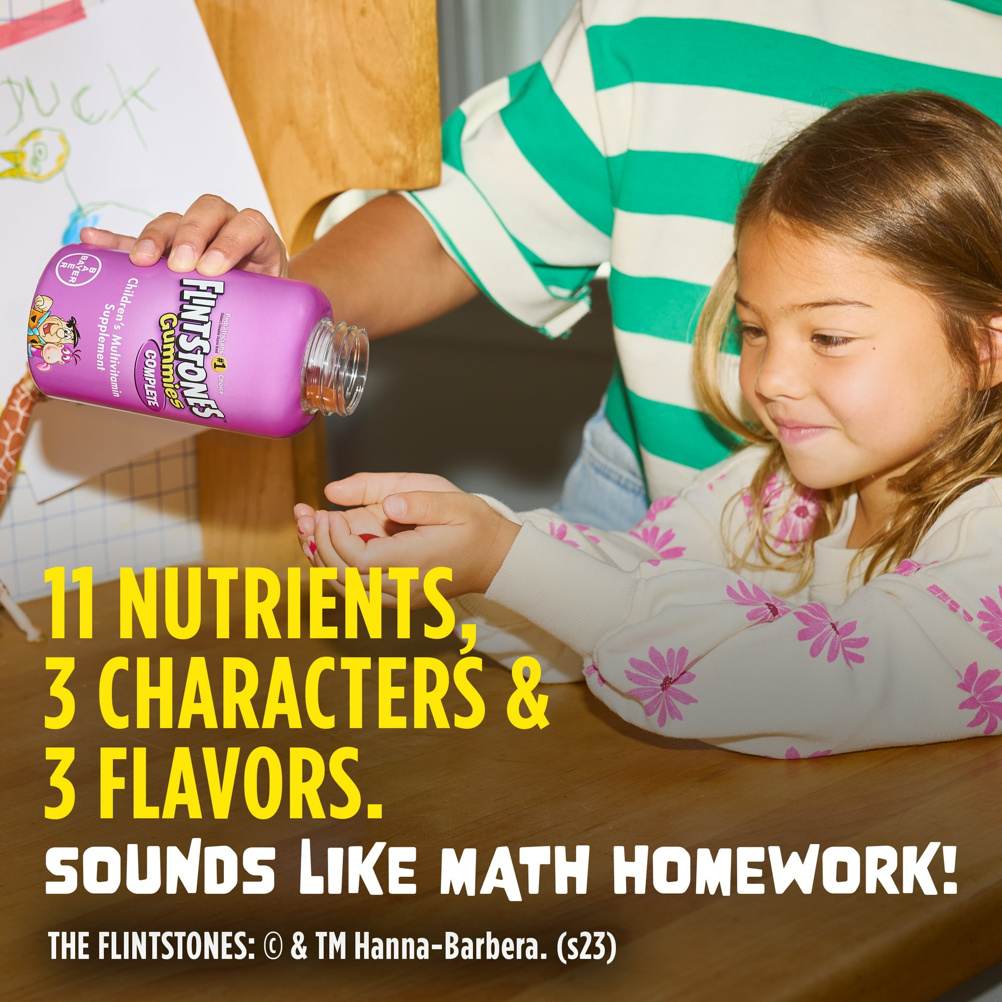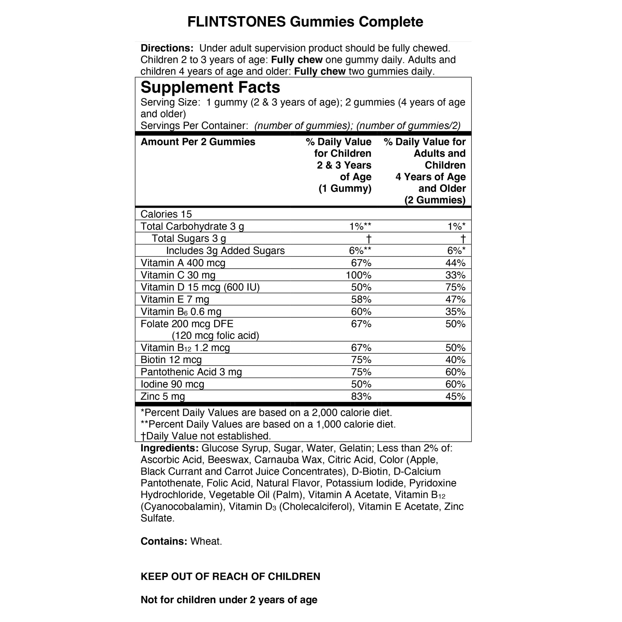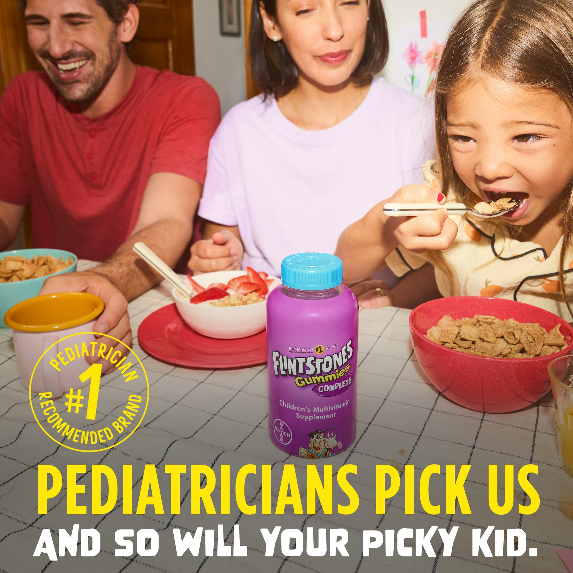 For over 50 years, Flintstones multivitamins have been trusted by parents and pediatricians to provide essential nutritional support, helping kids grow up healthy and strong. Flintstones Complete Multivitamin Gummies deliver a broad range of nutrients in delicious, easy-to-chew, fruit-flavored gummies that kids enjoy. These daily multivitamins contain key vitamins and minerals that support growing bodies, helping convert food to fuel for physical energy, while promoting bone, immune, and eye health.* With fun Flintstones character shapes and flavors like cherry, orange, and raspberry, these gummies make nutrition enjoyable. *This statement has not been evaluated by the Food and Drug Administration. This product is not intended to diagnose, treat, cure, or prevent any disease. For the most accurate supplement facts and allergen information, please refer to the product packaging.