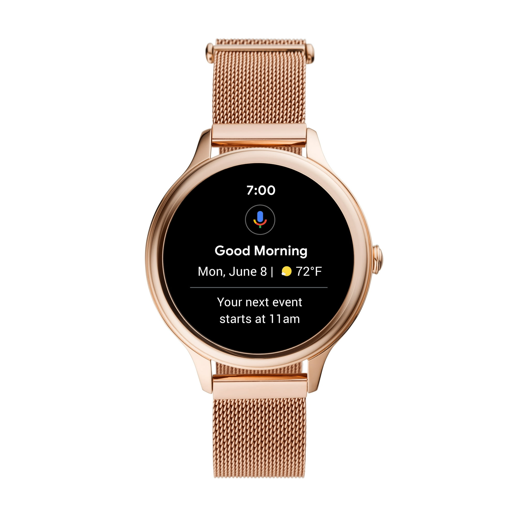 The Fossil Women's Gen 5E 42MM Stainless Steel Mesh Smartwatch (Model: FTW6068) is a versatile and stylish accessory that blends functionality and elegance.