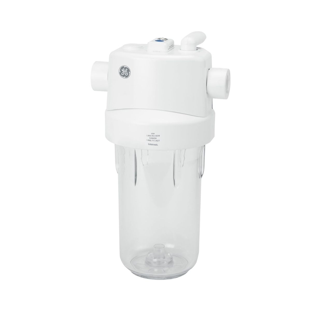 The GE Heavy-Duty Household Water Filtration System minimizes sand, sediment, and rust in your water source. It operates efficiently at 40-100 psi, with a transparent sump for easy monitoring and a canister wrench for simple filter replacements. A bypass valve extends the filter's lifespan when filtered water is not needed. This NSF certified system includes all necessary hardware and an installation kit for convenience and peace of mind.