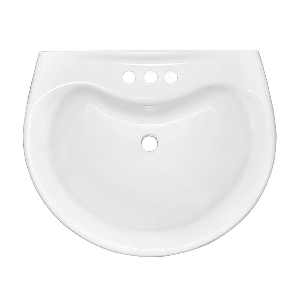 Enhance your bath or powder room with the simple elegance of the Glacier Bay Shelburne 9-5/8 in. Pedestal Sink Basin in White. Its open-clamshell design suits a range of bathroom styles, while the durable vitreous China material ensures longevity. This sink basin comes with pre-drilled faucet holes spaced 4 inches apart for easy installation (faucet not included). It also pairs beautifully with other items from the Shelburne Collection.