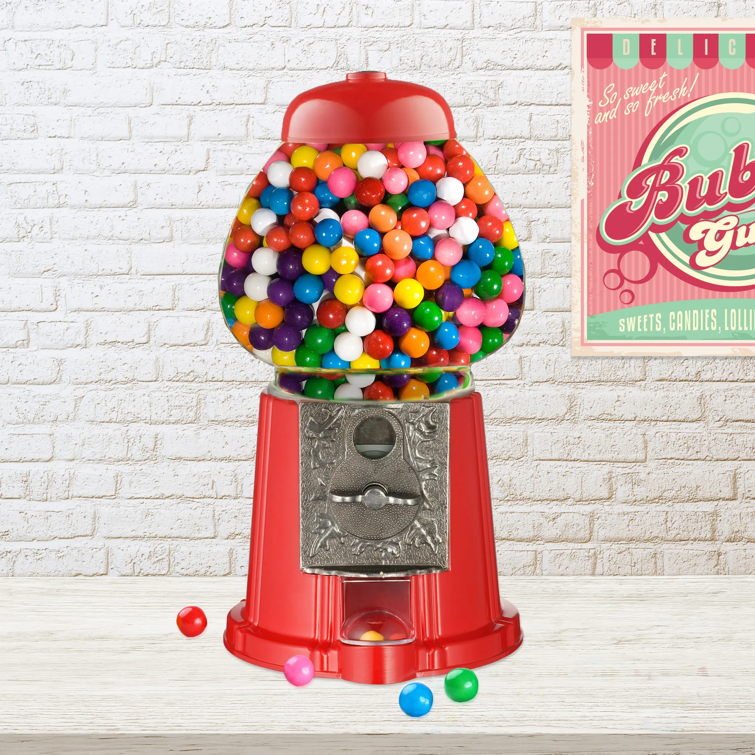 Mini Gumball Machine: This candy dispenser is perfect for small gumballs up to 0.62 inches, and it can also hold jellybeans, mint candies, hard candies, chocolate balls, or mixed nuts, allowing you to personalize your retro decor and snack choices.Coin Compatibility: The coin slot accommodates pennies, nickels, dimes, and quarters. Additionally, this mini bubble gum machine serves as a fun coin bank, letting you collect spare change and easily retrieve it when the base is full.Free Spin Option: Operate this gumball machine with or without coins, giving you the choice to share your favorite treats for free or for a small fee. Simply follow the easy-to-read instructions to adjust the coin mechanism.Adjustable Dispenser with Anti-Spill Cover: Customize the settings of the vending machine to control the amount of candy dispensed with each spin. The dispensing tray features a clear door cover, making it easy to access snacks while helping to prevent spills.