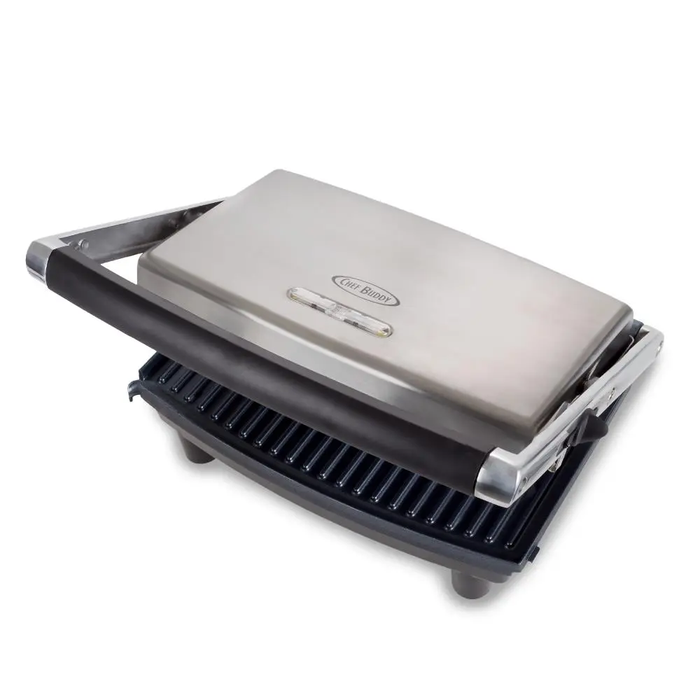 Versatile Cooking: Prepare a variety of dishes with this panini press indoor grill, including burgers, steaks, kebabs, breakfast sandwiches, and grilled cheese. Healthier Meals: Enjoy nutritious cooking with this sandwich maker, which features an advanced grease channeling system that drains fat as your food cooks. Spacious Cooking Area: The 6x10-inch heating surface offers plenty of space for your favorite foods, powered by 1400-watt dual heating zones for energy efficiency. Easy Cleanup: Quickly clean this sandwich maker thanks to its nonstick surface, two grease catchers that collect drained fat, and a convenient cleaning spatula. Materials: Made from metal and iron. Dimensions: Sandwich Maker: 12 x 10 inches; Cooking Surface: 6 x 10 inches; Power Cord: 29 inches. Color: Features a modern brushed steel finish.