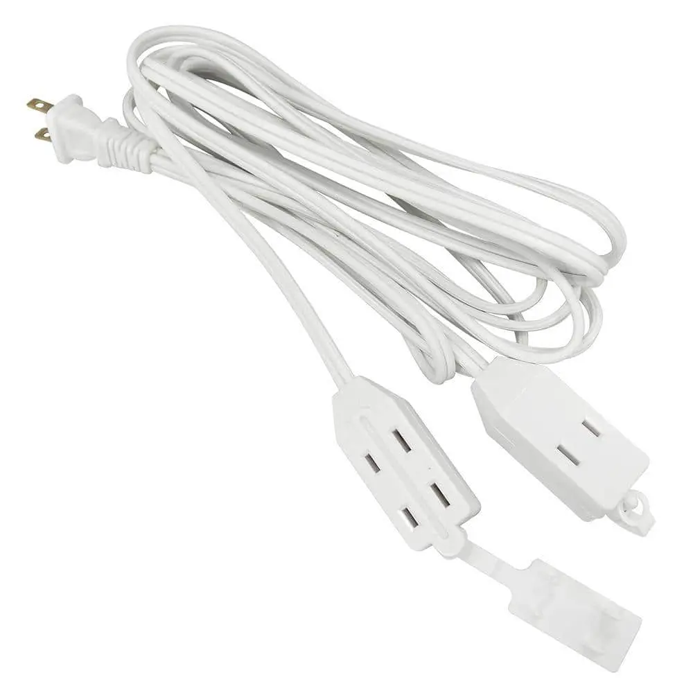 This HDX electrical cord splits from a single 2-prong plug into two 6 ft. 16/2 extension cords, each featuring a 3-outlet cube tap on the end. The dual cord design provides convenient power for multiple small appliances or devices in the same space, making it perfect for bedrooms, living rooms, offices, or any area needing additional outlets. It offers a durable, light-duty construction with a 13 Amp, 125-Volt, and 1,625-Watt electrical capacity.