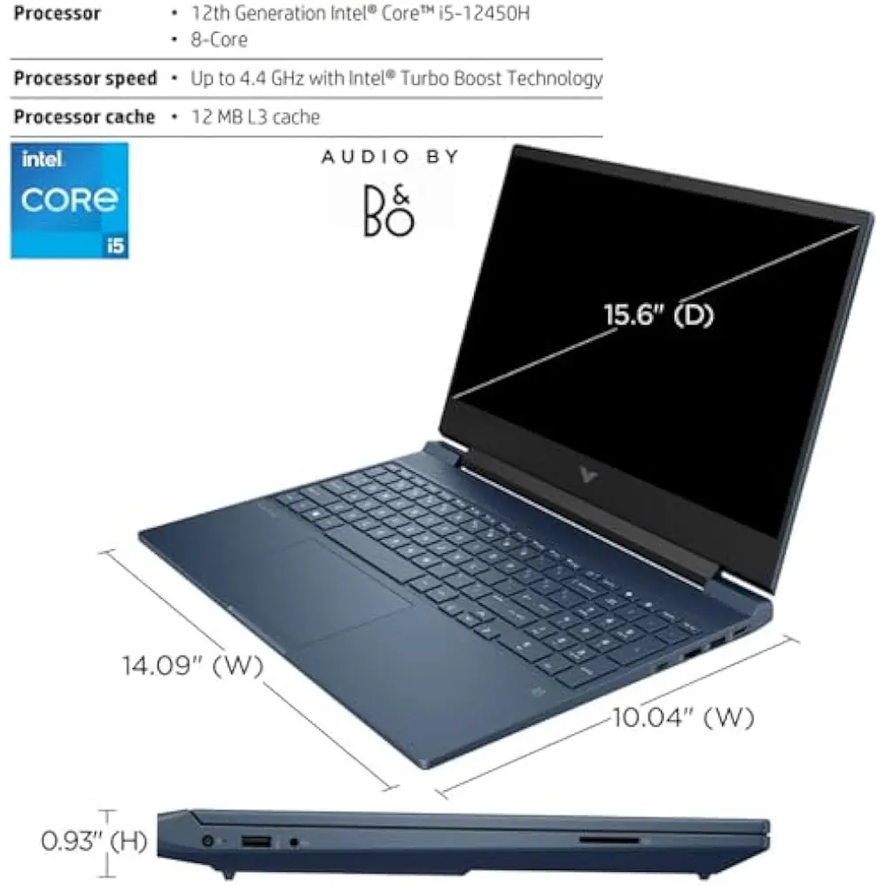At the heart of this laptop is the Intel Core i5-12450H Processor, featuring 8 cores and 12 threads, with a base frequency of 1.5 GHz and a maximum turbo frequency of 4.4 GHz. The NVIDIA GeForce RTX 3050 graphics card, which includes 4GB of GDDR6 memory, delivers impressive graphics performance, making it suitable for gaming and creative work.