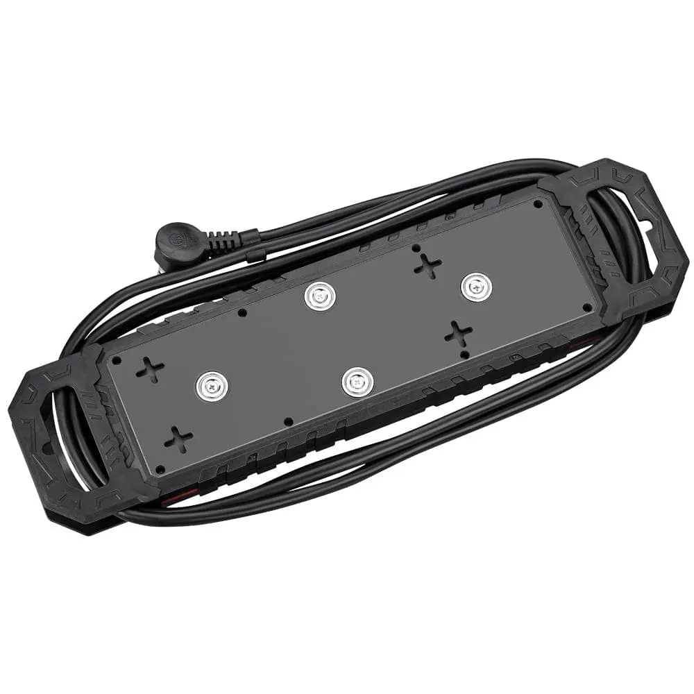 The Husky 10 ft. 14/3 Heavy-Duty 10-Outlet Surge Protector with USB-A and USB-C connections is perfect for powering tools and electronic devices in your garage or workshop. Built with durable rubber covers and a thick bumper, it’s designed for heavy-duty use. The 10 ft. cord with a right-angle plug provides extended reach and helps prevent outlet overcrowding.