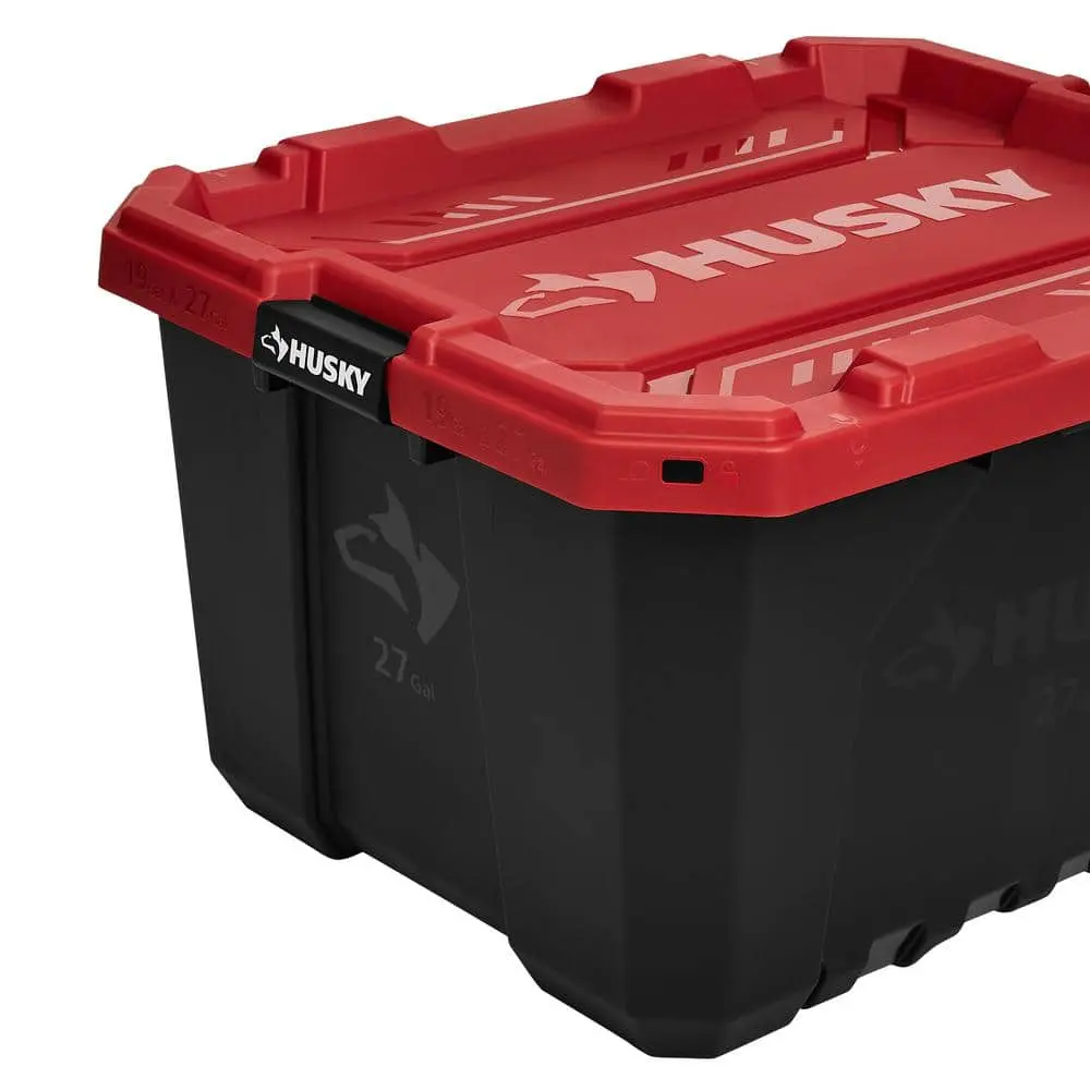 Husky27 Gal. Pro Grip Storage Tote in Black with Red Lid (999-27G-HUSKY)