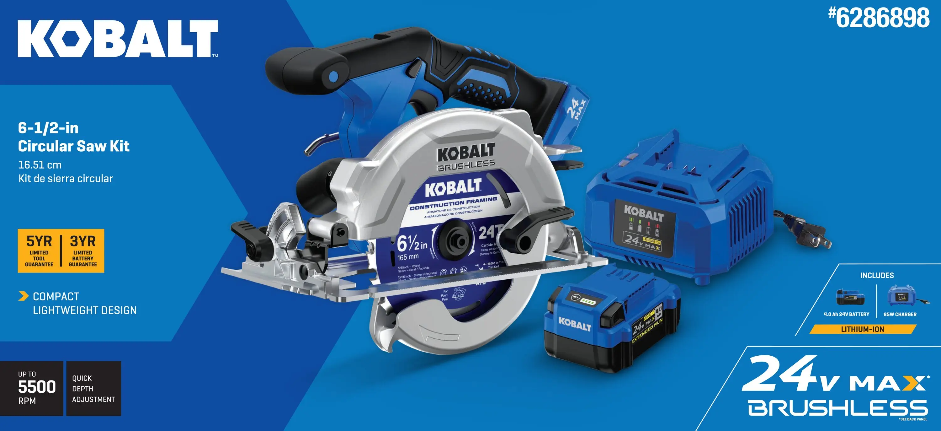 Upgrade your workshop with the Kobalt 24-Volt Brushless Circular Saw Kit and experience the difference.