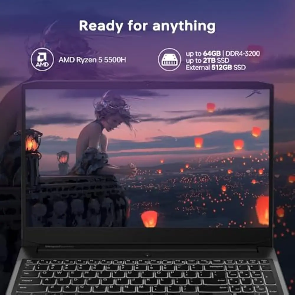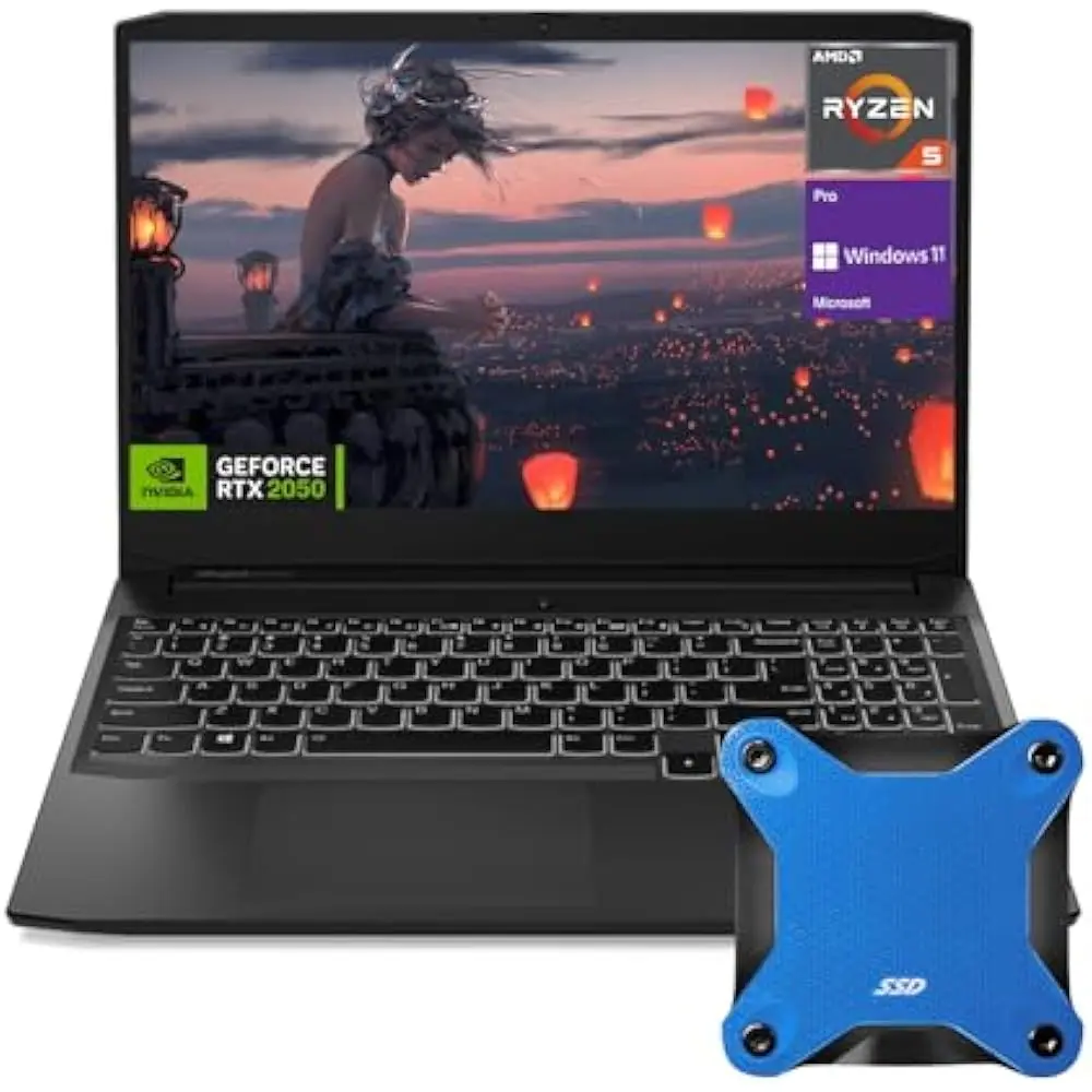 The Lenovo IdeaPad 3 15.6" Gaming Laptop offers a balanced mix of power and versatility for gamers and professionals alike. Equipped with an AMD Ryzen 5 5500H processor (up to 4.2GHz), 16GB RAM (expandable to 64GB), and 512GB SSD storage (plus a 512GB external SSD), it provides speed, ample storage, and multitasking capability. Its NVIDIA GeForce RTX 2050 (4GB) graphics card ensures high-quality visuals on the 15.6" FHD anti-glare display at 60Hz, making it well-suited for gaming and media use.