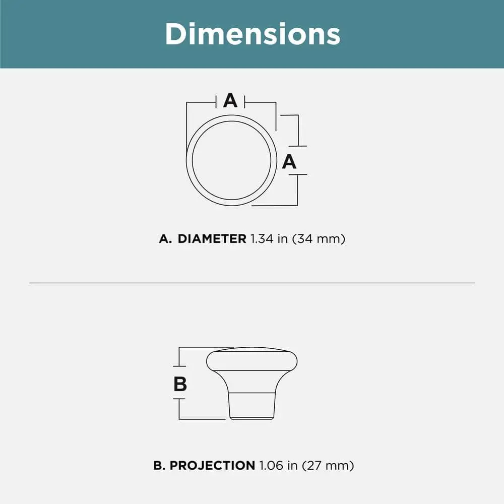 The Ceramic Mushroom knob from Liberty offers a simple yet elegant design. It’s a perfect fit for bathroom cabinets or dark wood kitchen cabinets, adding a touch of timeless charm to your space. Installation hardware is included for quick and easy setup.