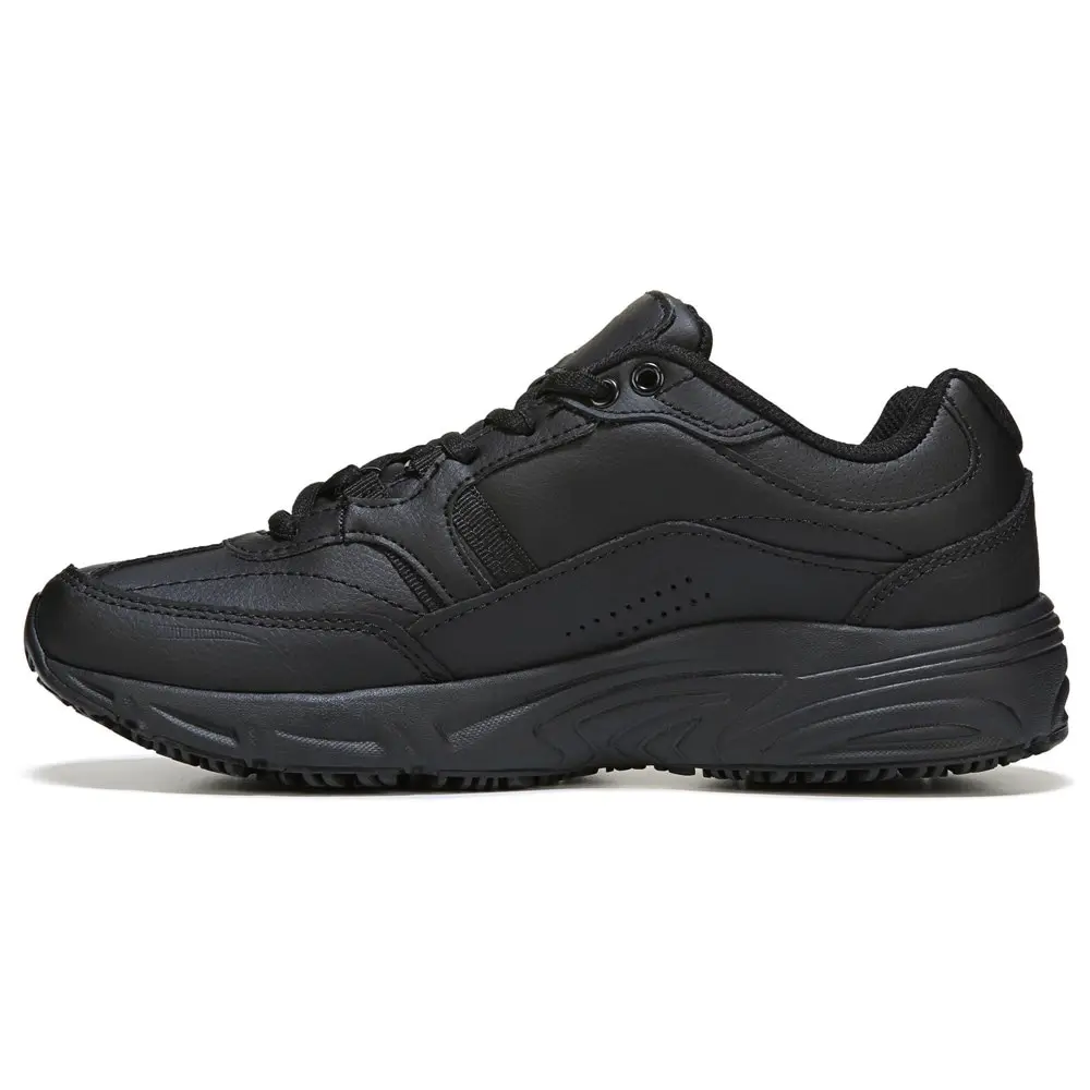 Inside, the soft lining houses a memory foam cushioned footbed, providing exceptional comfort and support during extended shifts. The wide fit accommodates various foot shapes for a customized feel. With a durable slip-resistant traction outsole, you can confidently tackle slippery surfaces, making this shoe an ideal choice for any workplace setting.