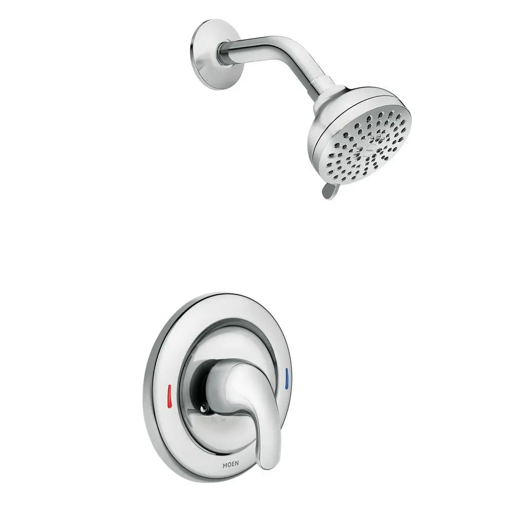 The MOEN Adler 1-Handle Tub and Shower Faucet in Chrome combines style and practicality. Choose between a lever or knob handle, and enjoy the polished chrome finish that fits any bathroom. The Posi-Temp pressure-balancing valve maintains consistent water pressure and temperature for comfort.