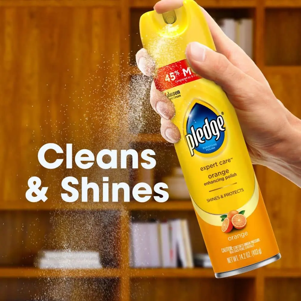 For decades, Pledge has been trusted to care for and protect surfaces, and that legacy continues with our Expert Care Enhancing Polish. This furniture polish not only shines but also protects wood and a variety of other surfaces. The refreshing orange scent adds to the experience while the formula effectively removes dust and fingerprints, leaving a glossy, protective coating without any waxy buildup. Perfect for polishing delicate, high-end surfaces, Pledge Enhancing Polish works on sealed wood, leather, granite, stainless steel, laminate, quartz, and other hard surfaces, helping your home shine and look its best.