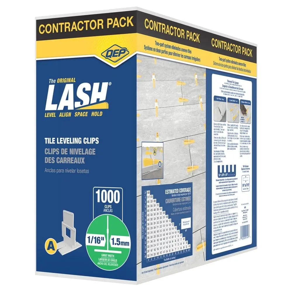 The QEP LASH White 1/16 in. Clip, Part A of Two-Part Tile Leveling System (1,000-Pack) is an essential tool for achieving perfectly level tiles. The 1/16 in. clip ensures consistent spacing and accurate alignment for your tiles. With a generous 1,000-pack, you’ll have plenty of clips for large or multiple projects. This clip is Part A of a two-part system, designed to work in conjunction with the rest of the leveling system for optimal results. The white color ensures it blends seamlessly with most tile surfaces, while its durable material ensures reliable performance during installation